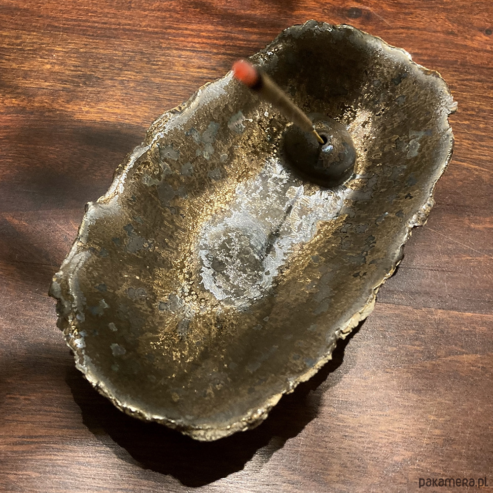 Kamionkowa odstawka pod kadzidełka o wymiarach ok 17cm x 10cm.