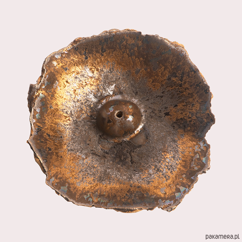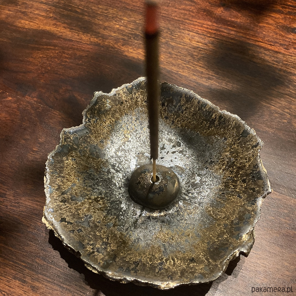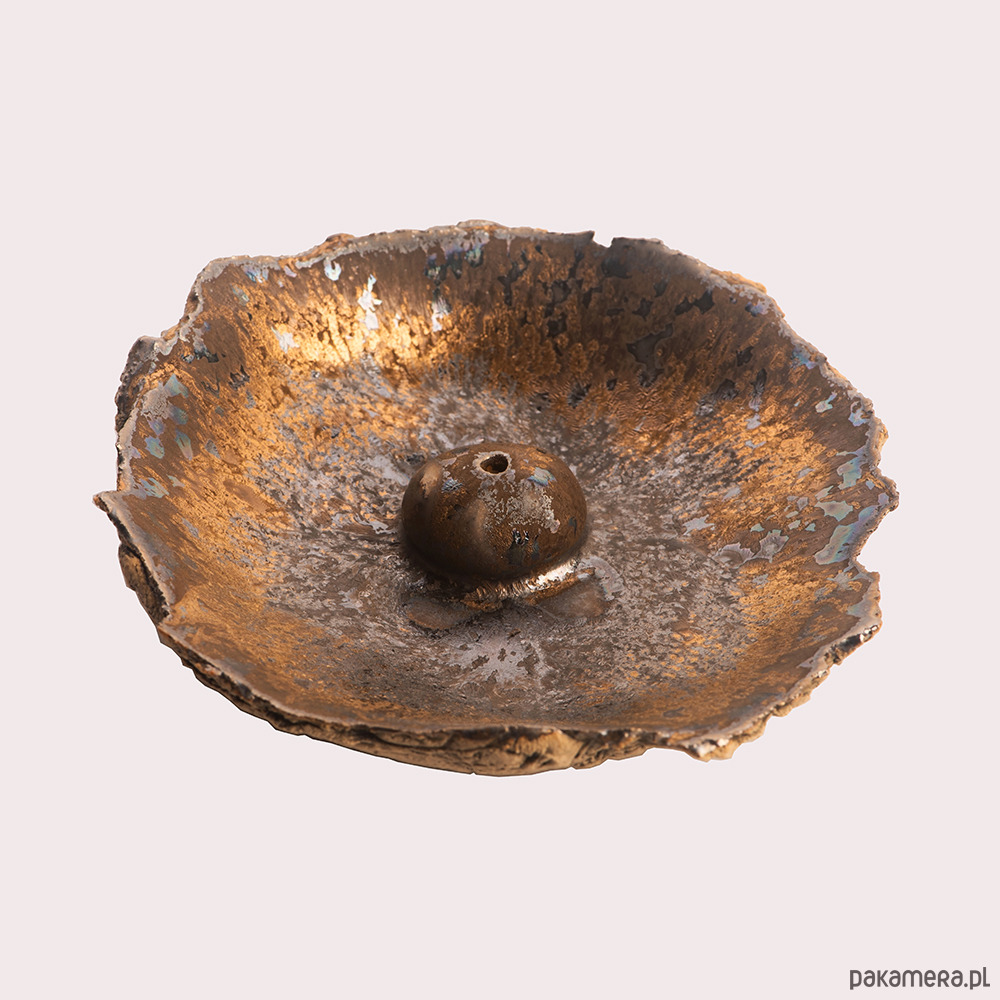 Kamionkowa odstawka pod kadzidełka o średnicy około 13 cm.