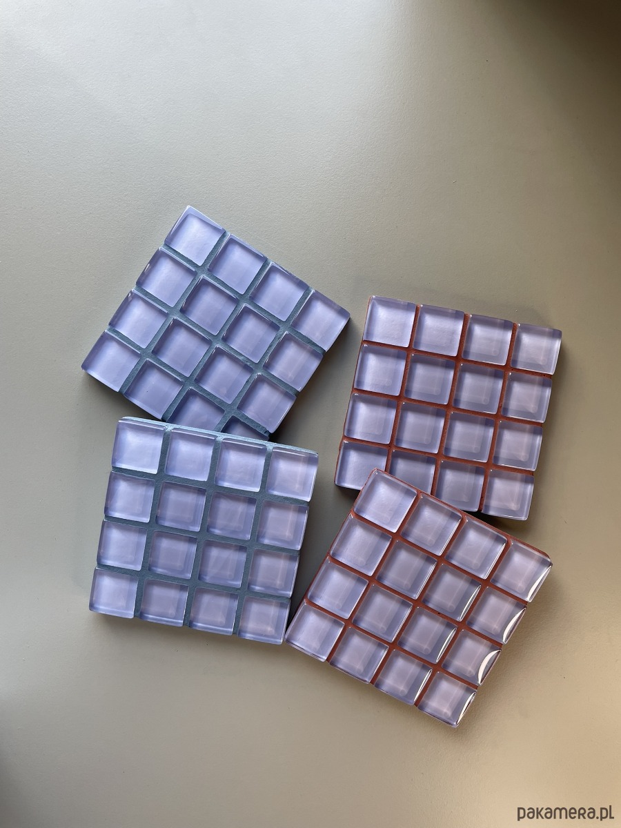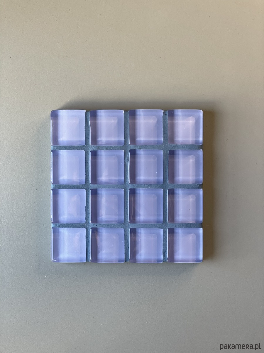 Geometryczna, minimalistyczna i pełna kontrastów. Podkładka została stworzona z ręcznie ułożonych mlecznofioletowych kostek mozaiki, osadzonych w fugowej ramie o odcieniu niebieskim. Ten odważny duet kolorów przyciąga wzrok i sprawia, że nawet najprostszy kubek z herbatą prezentuje się wyjątkowo.