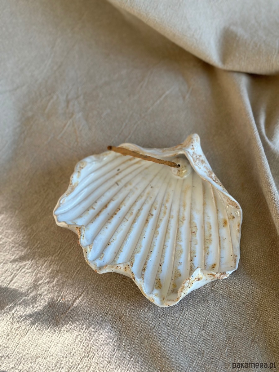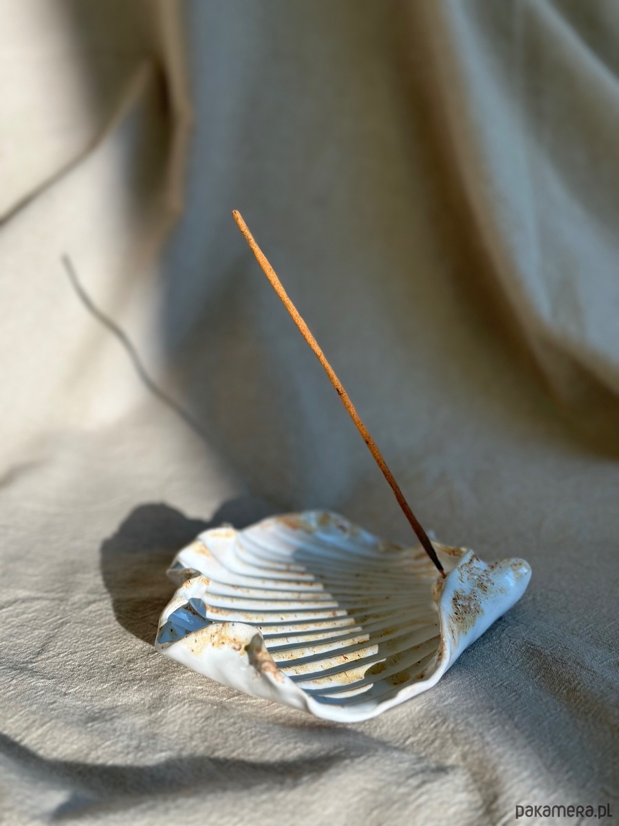 Podstawka na kadzidełko w kształcie muszli z perłą to w pełni ręcznie wykonany przedmiot, który nie dość, że doda uroku wnętrzu, w którym stanie, to przede wszystkim sprawdzi się idealnie do palenia wszystkich kadzideł.
