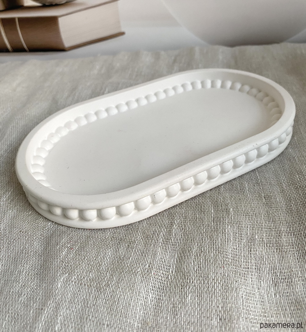 Minimalistyczna i stylowa tacka, wykonana z wysokiej jakości gipsu polimerowego. To połączenie elegancji i funkcjonalności. Jej prostota i nowoczesna forma, doskonale podkreśla świece, biżuterię lub drobne dekoracje, dodając wnętrzu harmonii i subtelnego luksusu.