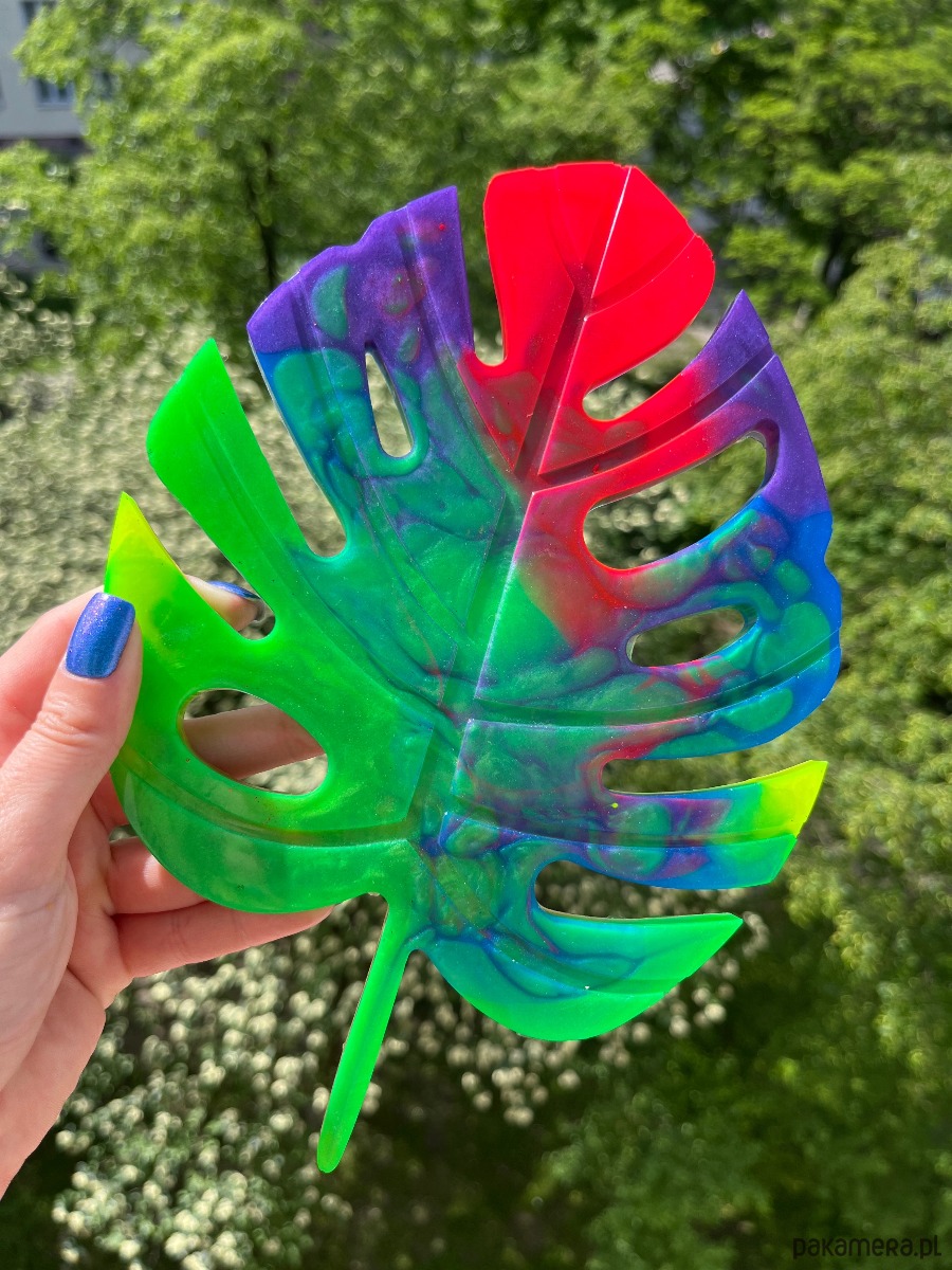 Piękne kolory ,kształt liścia monstery ,mega modny motyw obecnie w designe i ozdobach domowych .