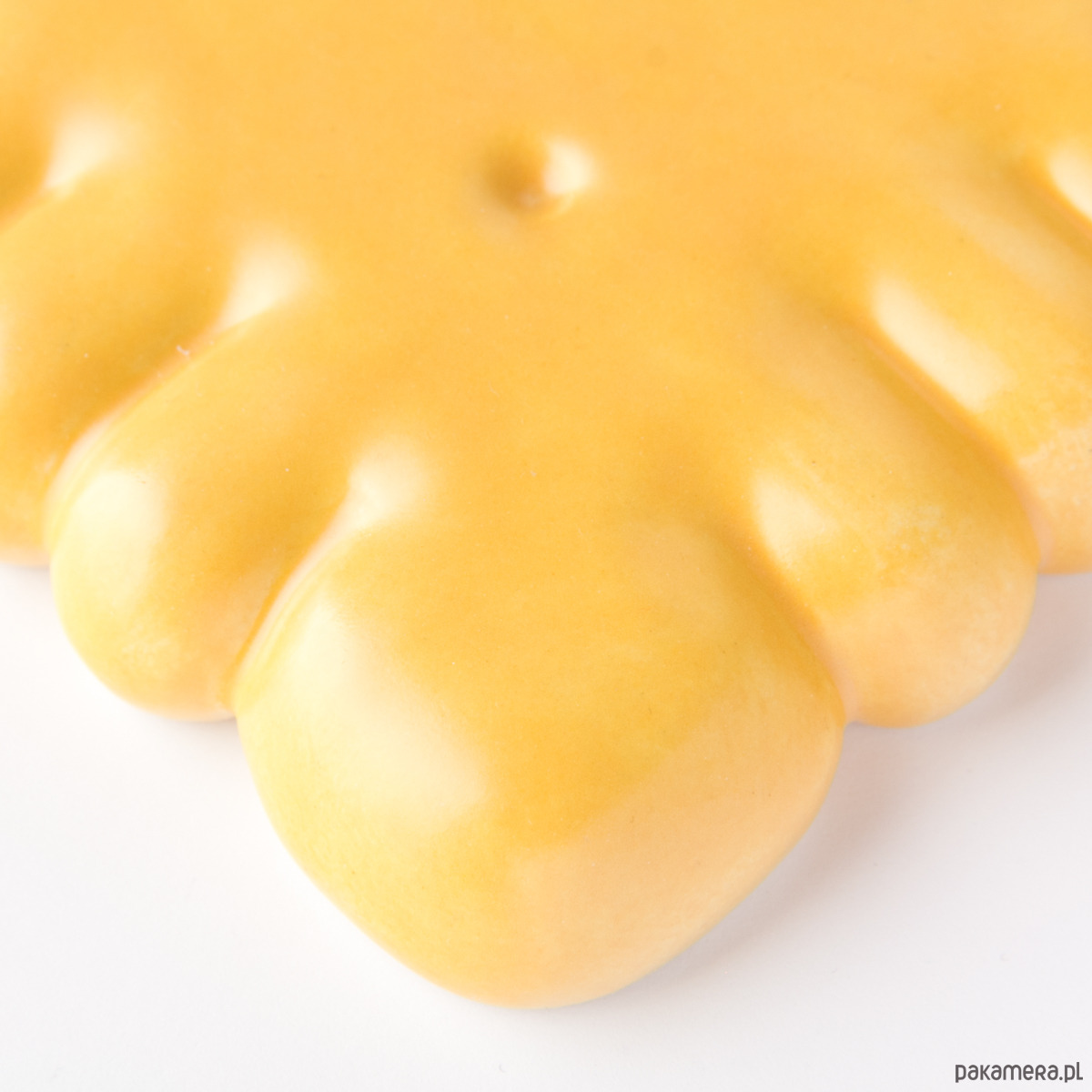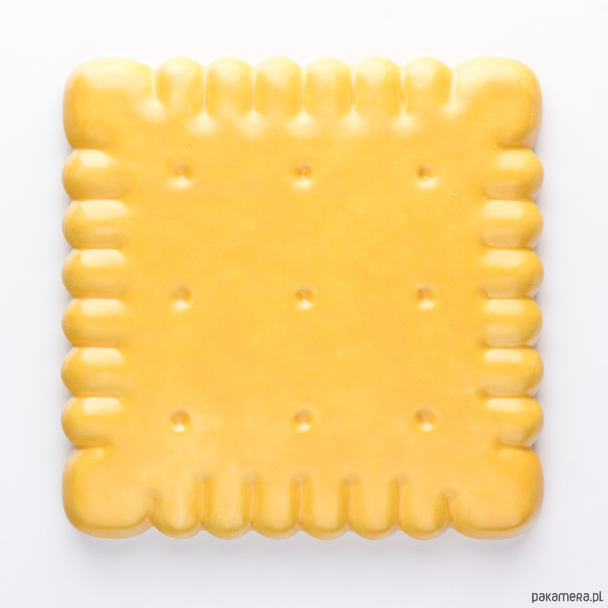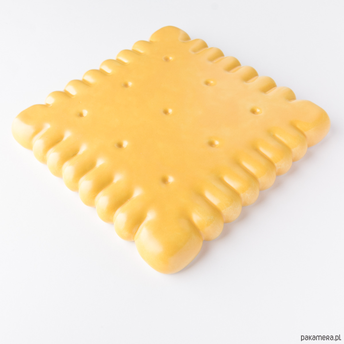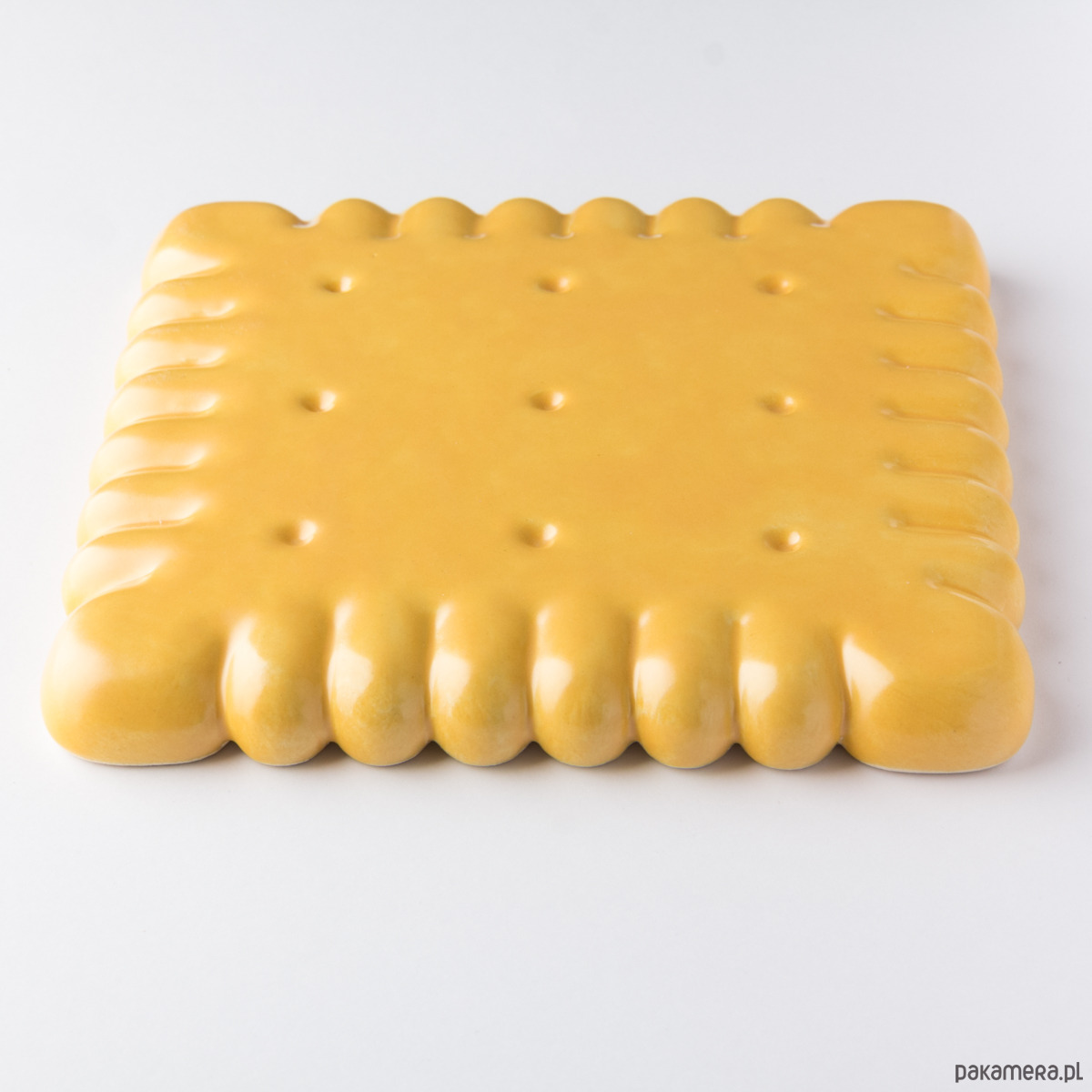 Zabawna podstawka/podkładka pod kubek w kształcie herbatnika. Ręcznie wykonana z jasnej gliny, pokryta żółto-beżowym szkliwem o satynowym połysku. Szkliwo nadaje się do kontaktu z żywnością. Jest to b. praktyczna kopia herbatnika, ponieważ nawet jeśli goście wpadną z niezapowiedzianą wizytą a Ty nie masz ich czym poczęstować . . . to tak na prawdę na stole zawsze masz jakieś ciastko :) Przedmiot może mieć różne zastosowanie np. jako podstawka pod kubek, pod gorące naczynie, jako dekoracja sama w sobie.