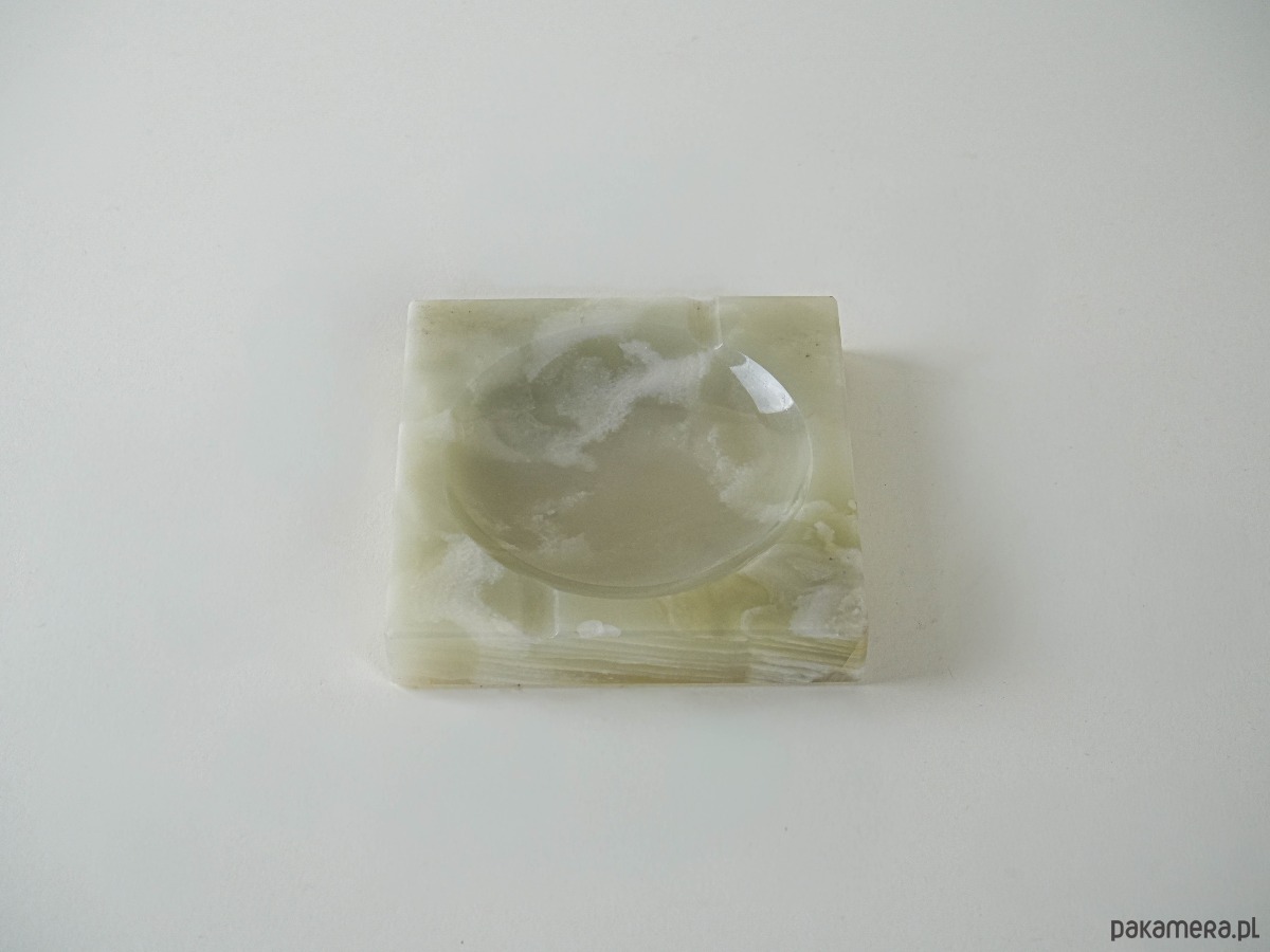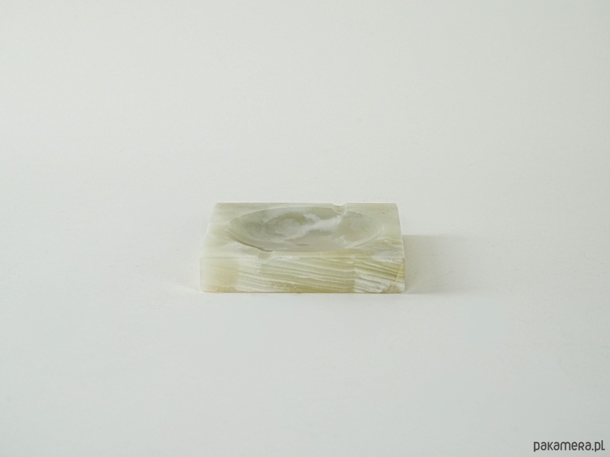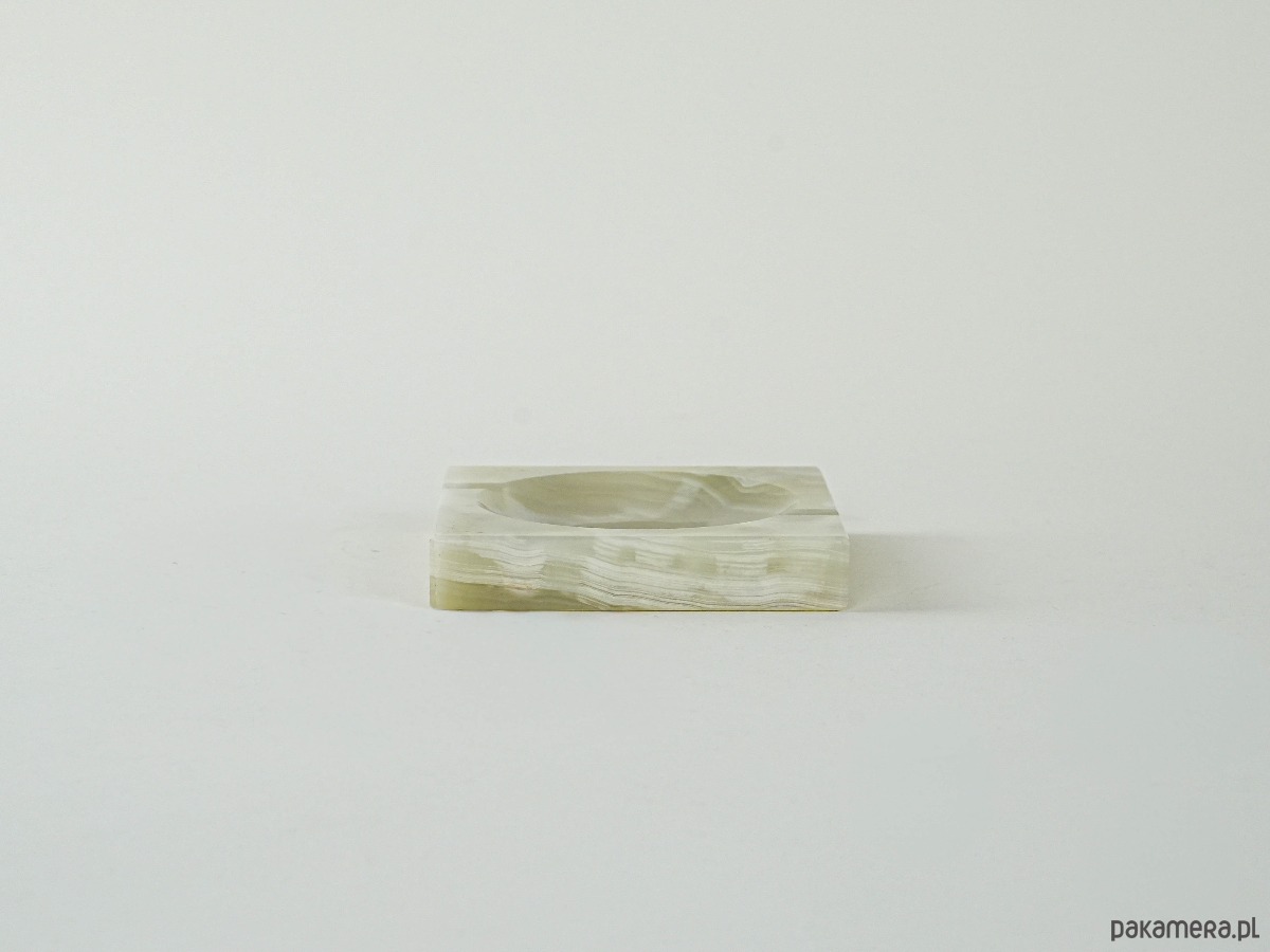Kwadratowa podstawka wykonana z naturalnego onyksu w odcieniach seledynu i kremowej bieli. Z delikatnie wgłębionym środkiem – idealna jako miejsce na biżuterię, palo santo czy drobne przedmioty. Surowy, minimalistyczny kształt i naturalne użylenie kamienia nadają jej unikatowy, dekoracyjny charakter.