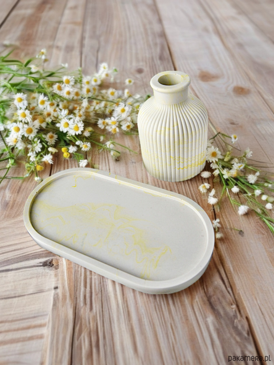 Ręcznie stworzony zestaw - podstawka owalna i wazonik.