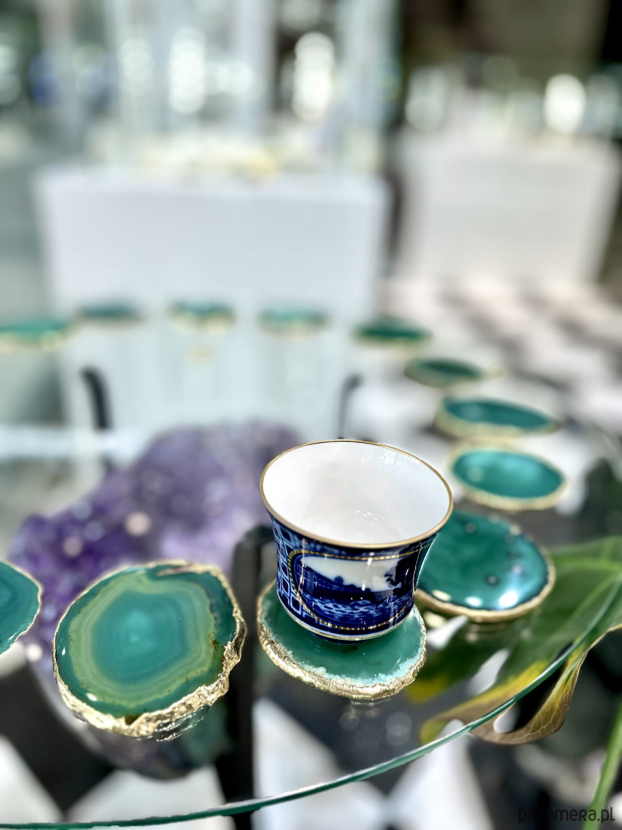 Agatowe podstawki pod filiżanki/kubki oblane 24-karatowym złotem