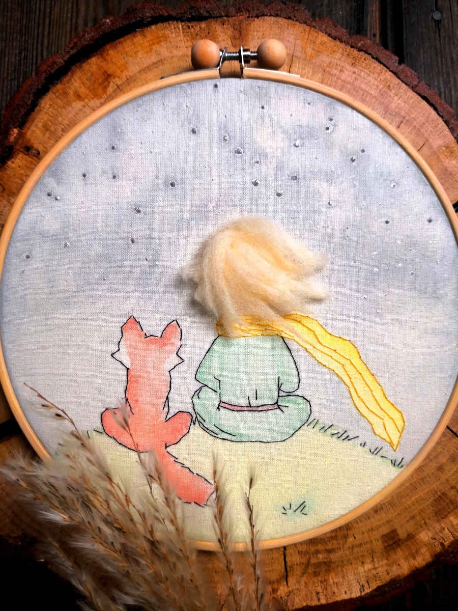 • obrazek został ręcznie wyhaftowany na płótnie bawełnianym i pomalowany farbami akwarelowymi