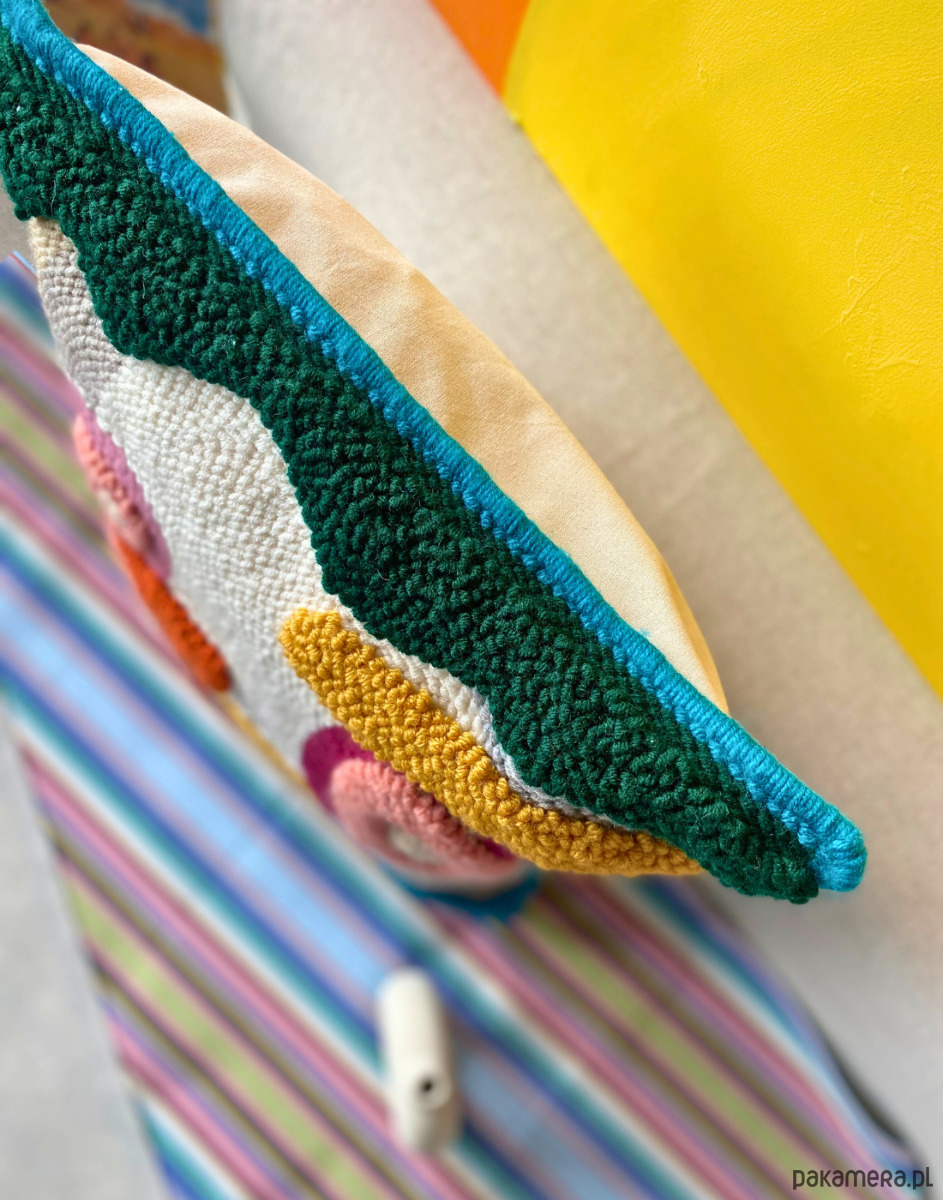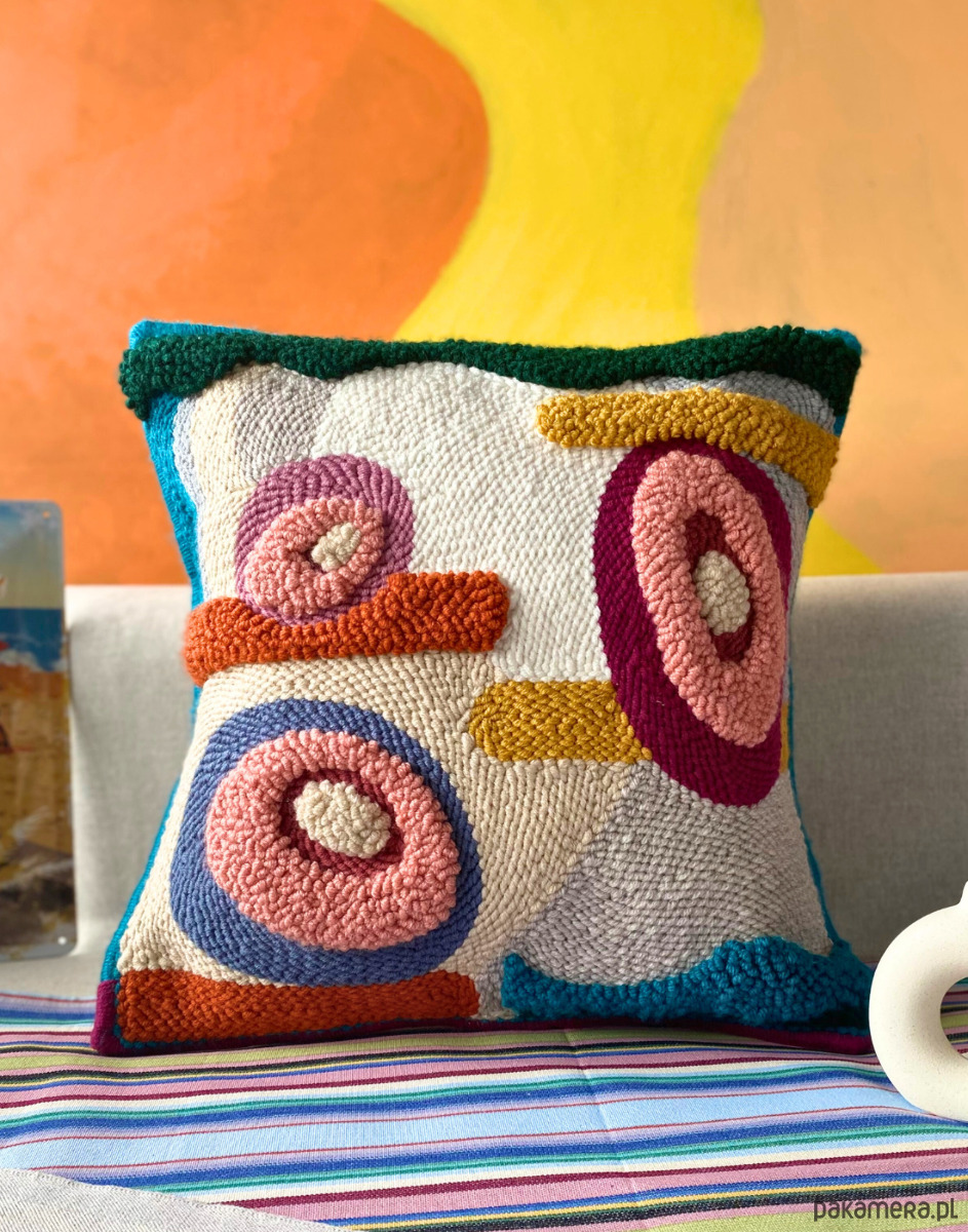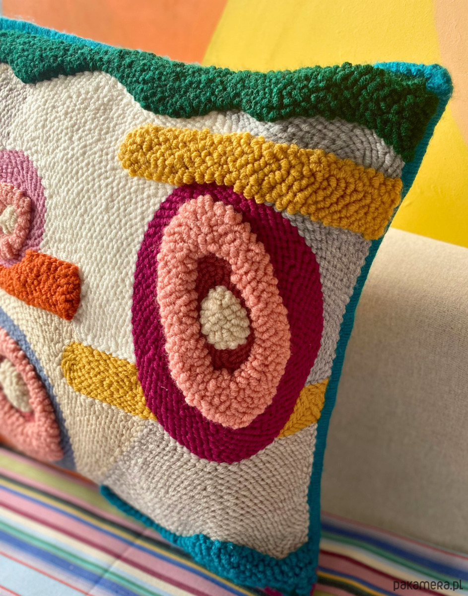 To takie małe dzieło sztuki, które możesz mieć obok siebie na kanapie. Niezwykle kolorowa i niedookreślona. Idealna do ciepłego i nowoczesnego salonu, gdzie chętnie rozgości się na stylowej sofie lub w fotelu. Ręcznie haftowana techniką punch needle - ozdobne, wypukłe pętelki. Jest to autorski projekt i wyjątkowa poduszka, ponieważ powstał tylko jeden taki egzemplarz. Zyskaj w domu dodatek, którego nie ma nikt inny - oryginalny i unikatowy. Poduszka Abstrakcyjna wprowadzi kolor do Twojego wnętrza.