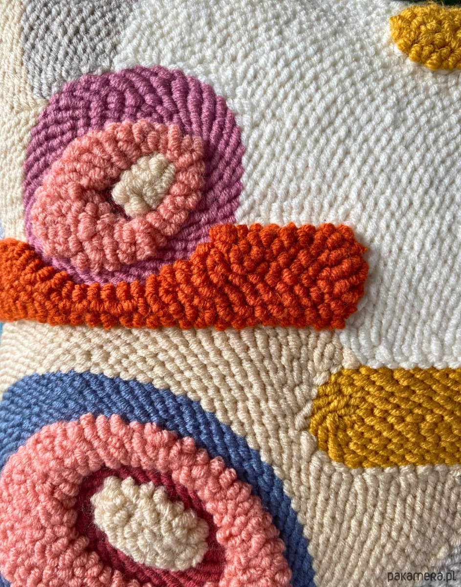 - poduszka dodatkowo jest dekoracyjnie obszyta włóczką