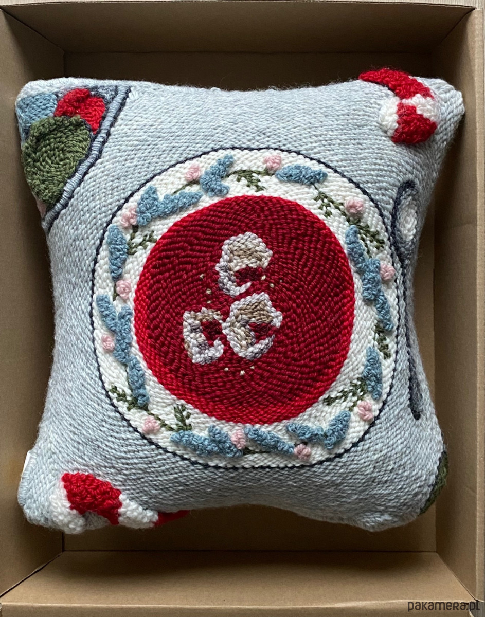 - poduszka dodatkowo jest dekoracyjnie obszyta włóczką