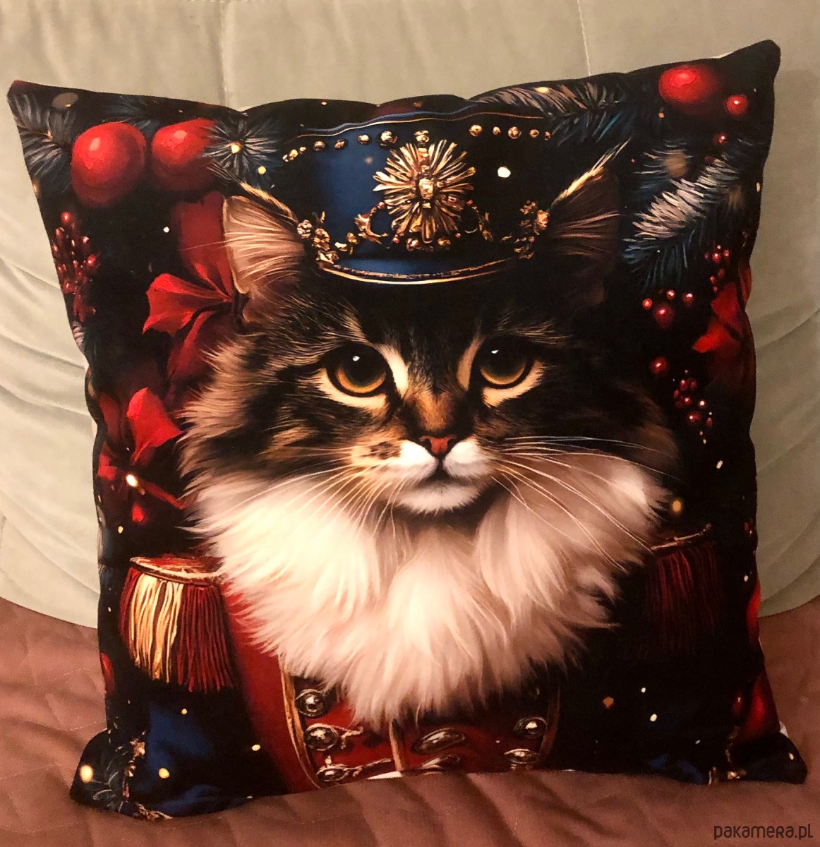 Śliczna poduszka z gwiazdkowym kotem. Z przodu wzór na welurze, z tyłu pikowany velvet. Wysokość - szerokość ok. 40 cm.