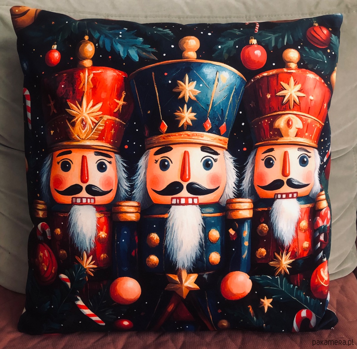 Poduszka bożonarodzeniowa z dziadkami do orzechów