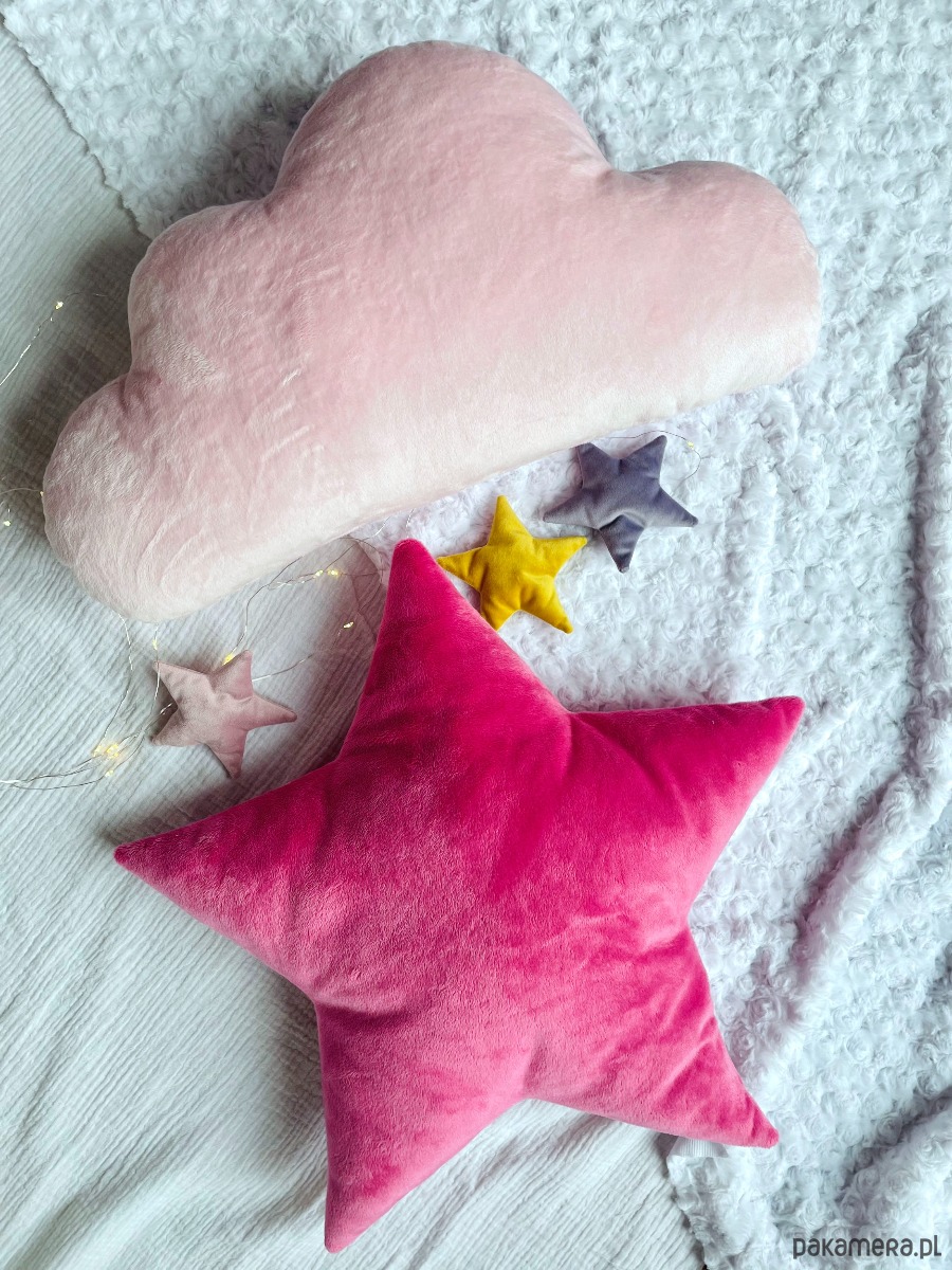 Wprowadź do swojego wnętrza przytulny akcent dzięki miękkiej, różowej poduszce w kształcie chmurki! Świetnie sprawdzi się jako dekoracja łóżeczka, miękka przytulanka do zasypiania czy komfortowe oparcie podczas zabawy.