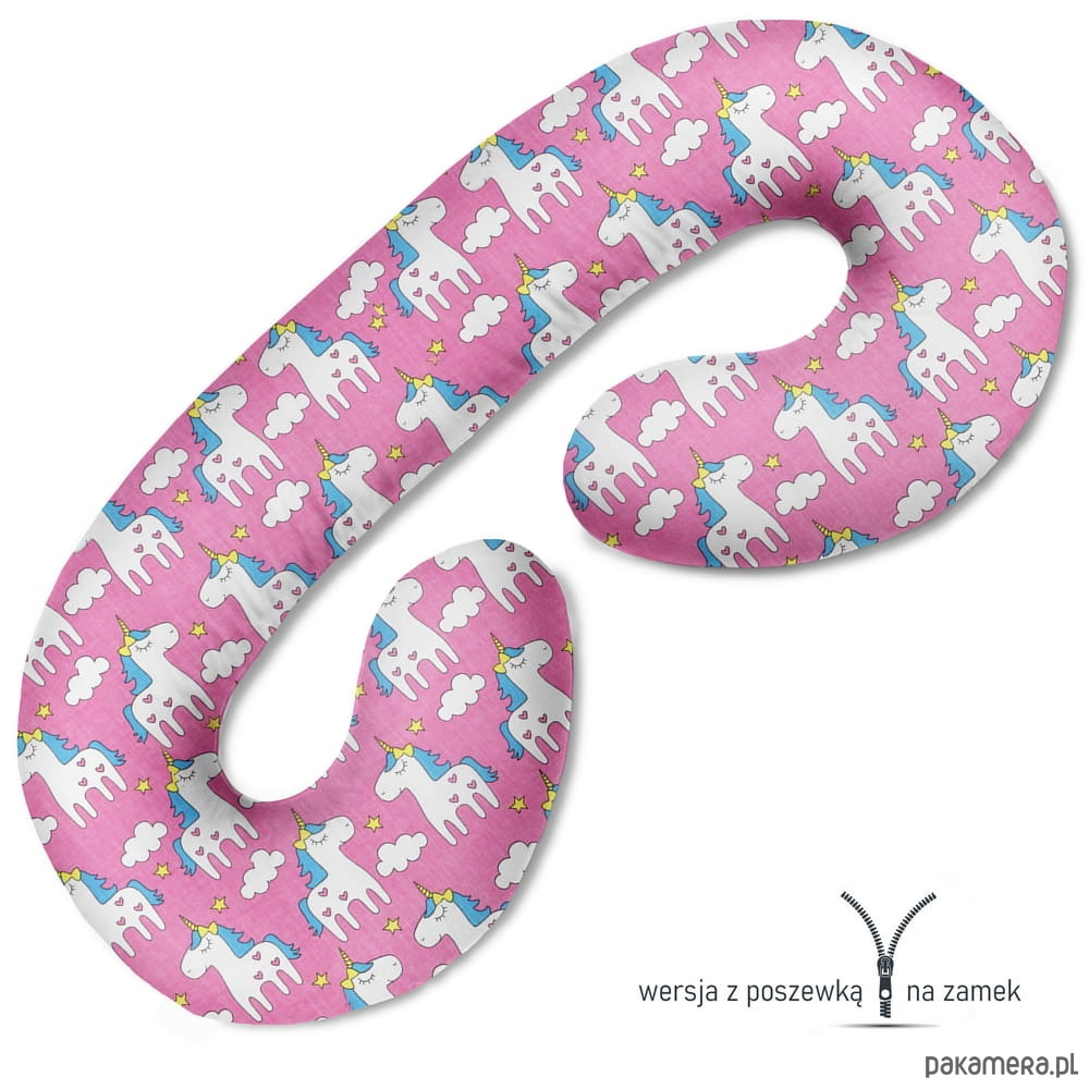 Poduszka ciążowa do spania i karmienia Jednorożce na różowym