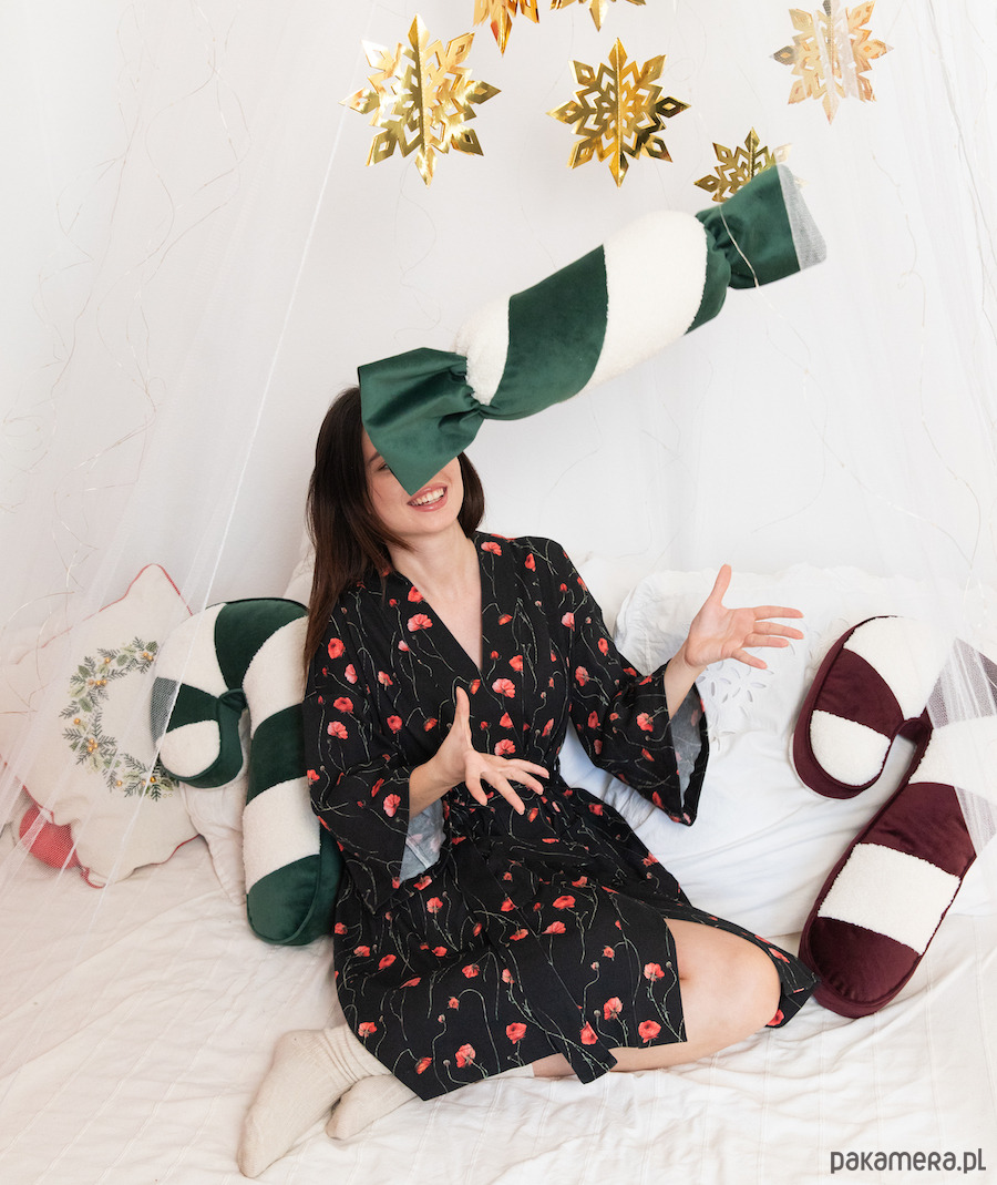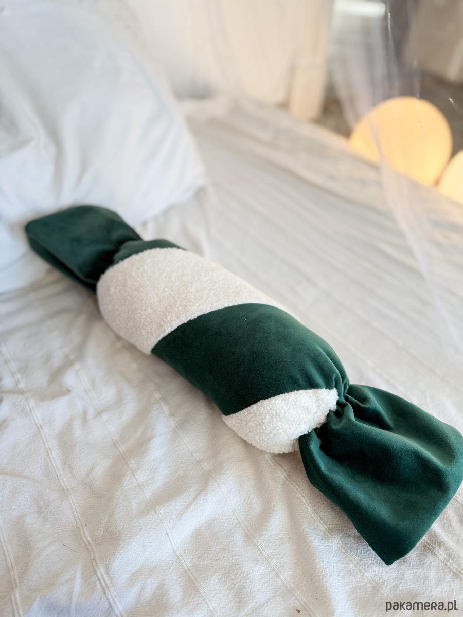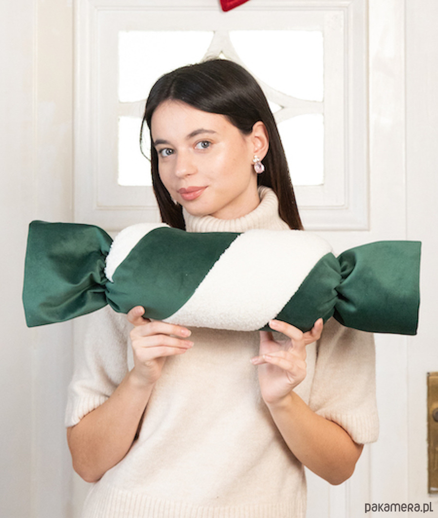 Poczuj magię świąt z naszymi poduchami! Poduszka cukierek zieleń to idealny dodatek do Twojego domu, aby stworzyć niepowtarzalną, przytulną atmosferę. Poduszka wypełniona jest kulką silikonową, odpowiednią dla alergików. Poduszka została wykonana z połączenia tkaniny welurowej w kolorze bordowym oraz tkaniny barankowej w kolorze ecru.