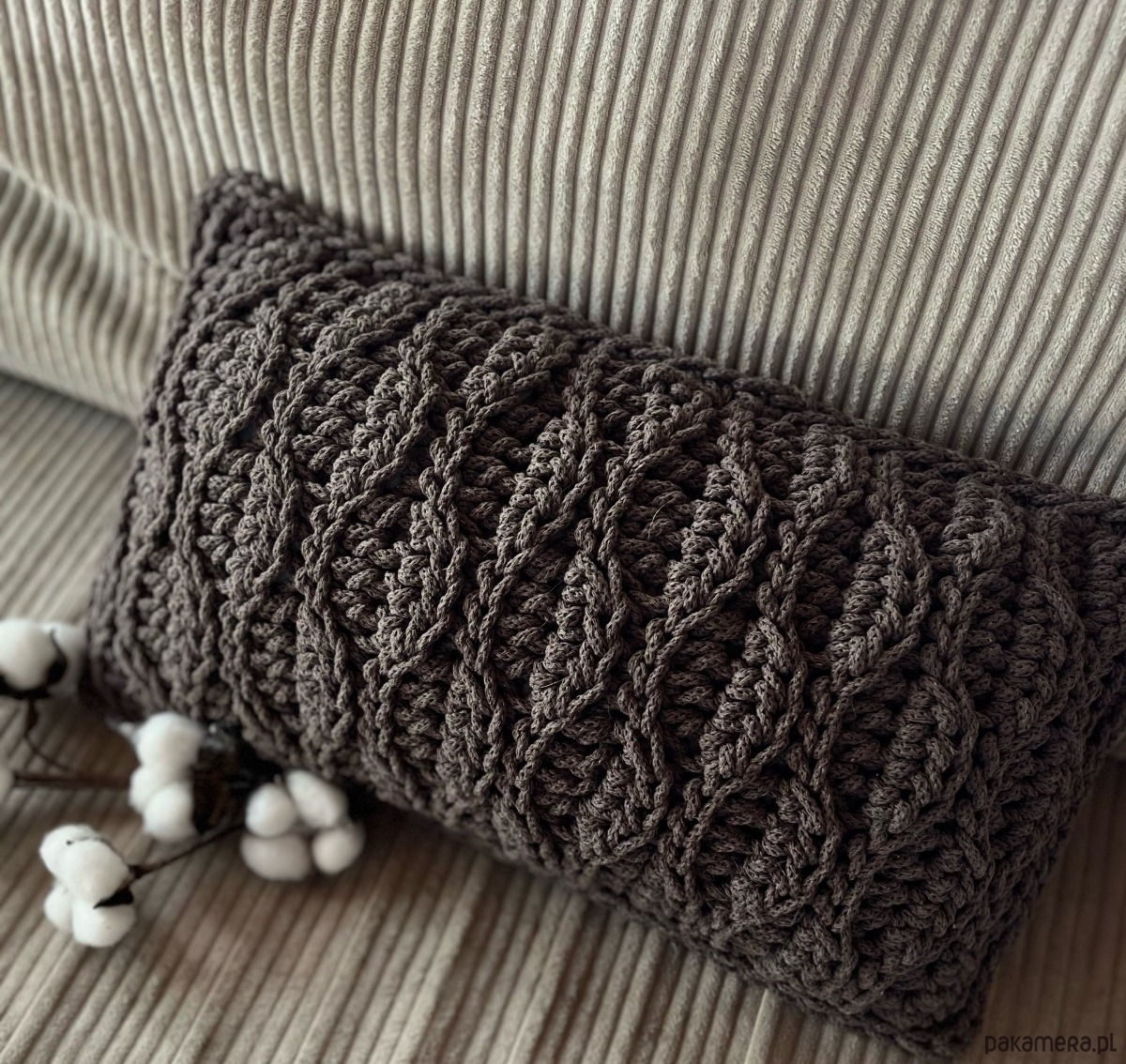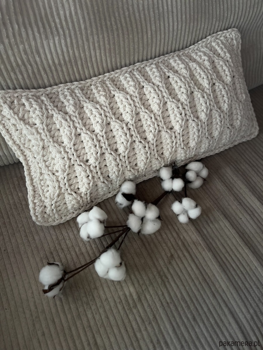 Poduszki ręcznie dziergane w oryginalny wzór będą wspaniałym dodatkiem do każdego wnętrza.
