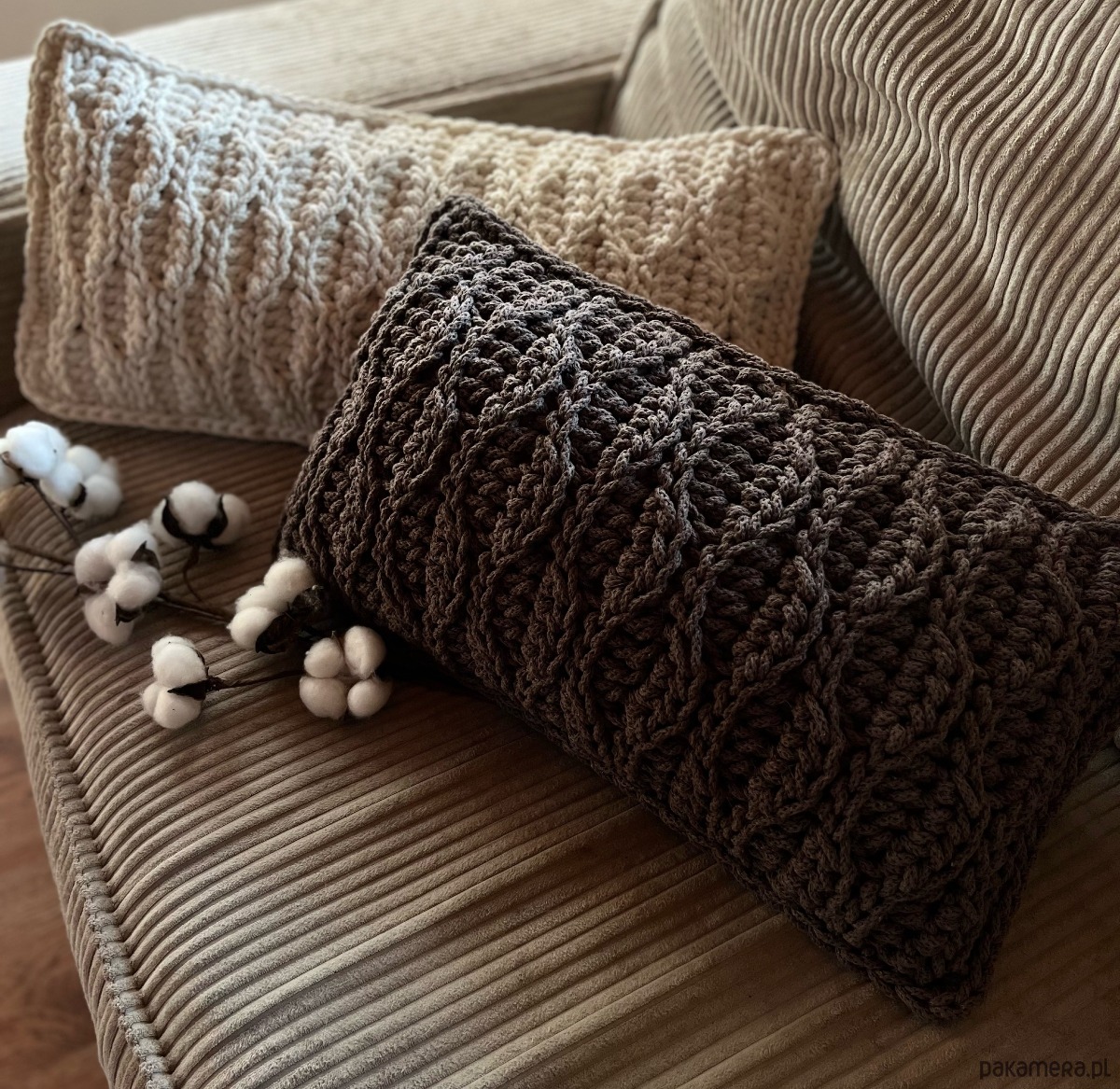 Poduszki ręcznie dziergane w oryginalny wzór będą wspaniałym dodatkiem do każdego wnętrza.
