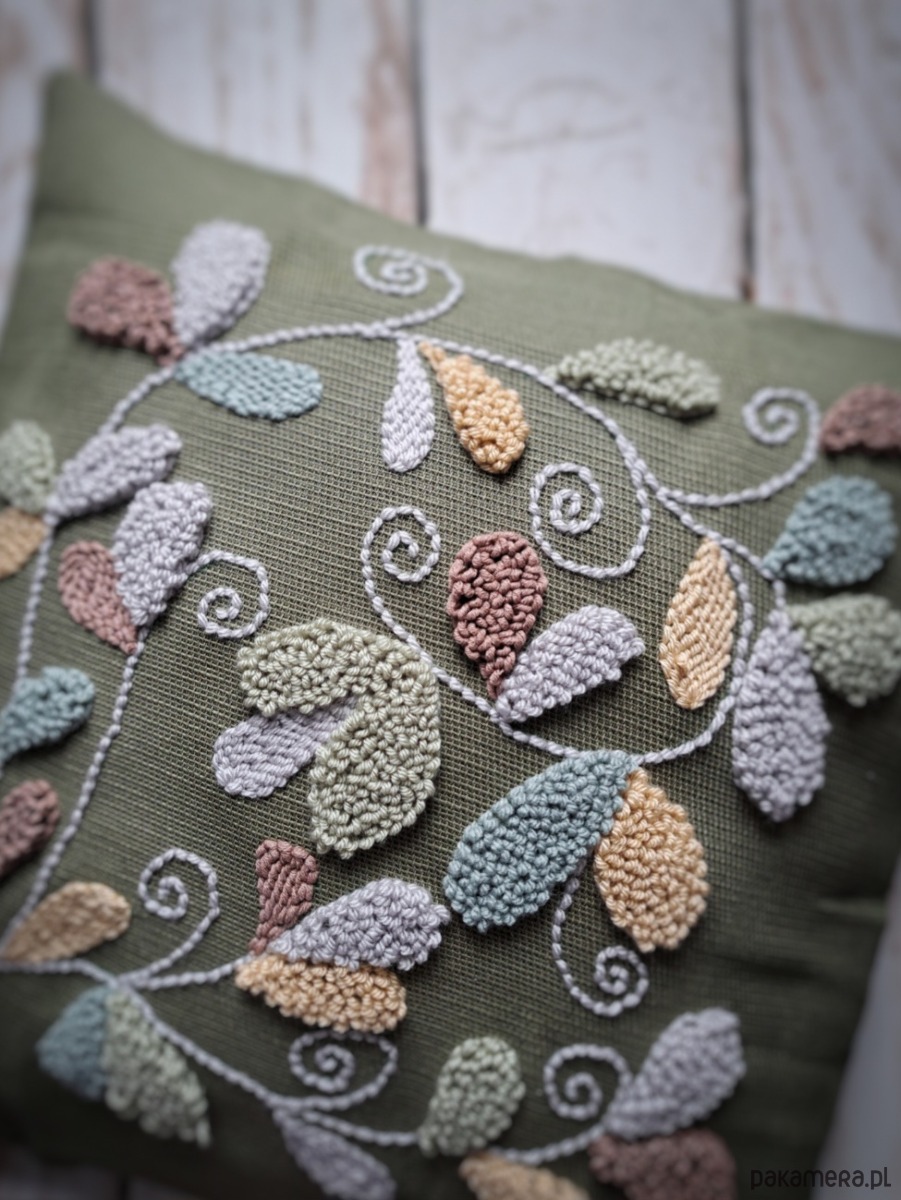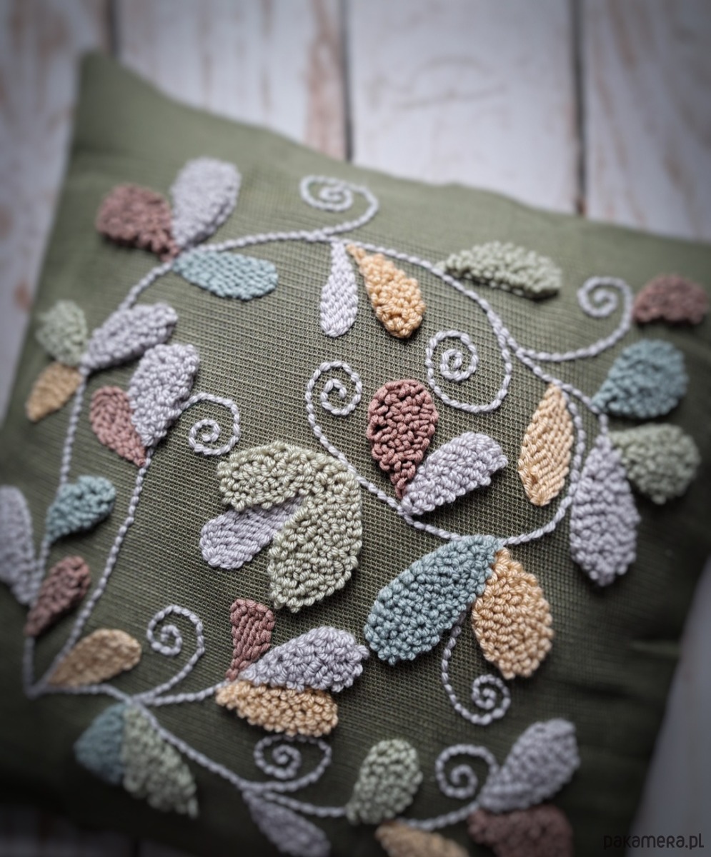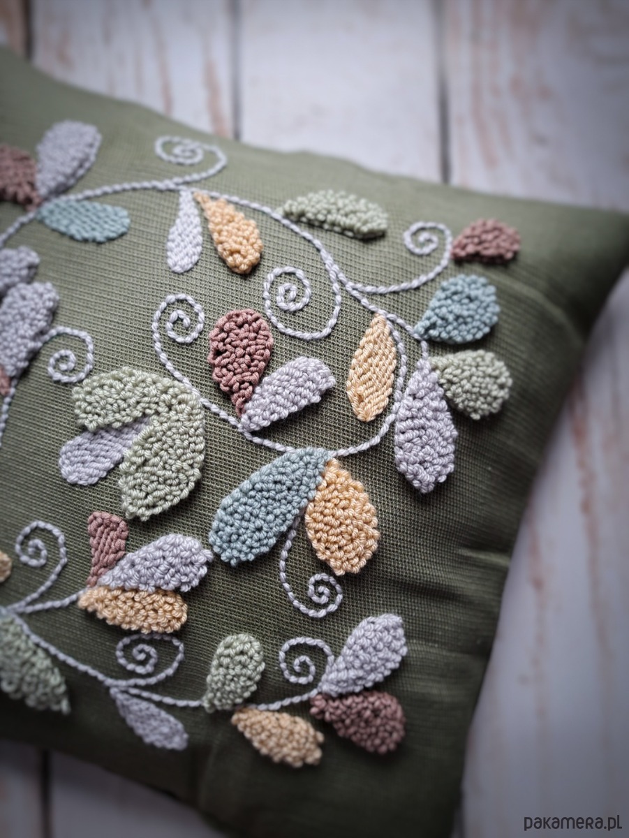 Poszewka wykonana za pomocą haftu punch needle.