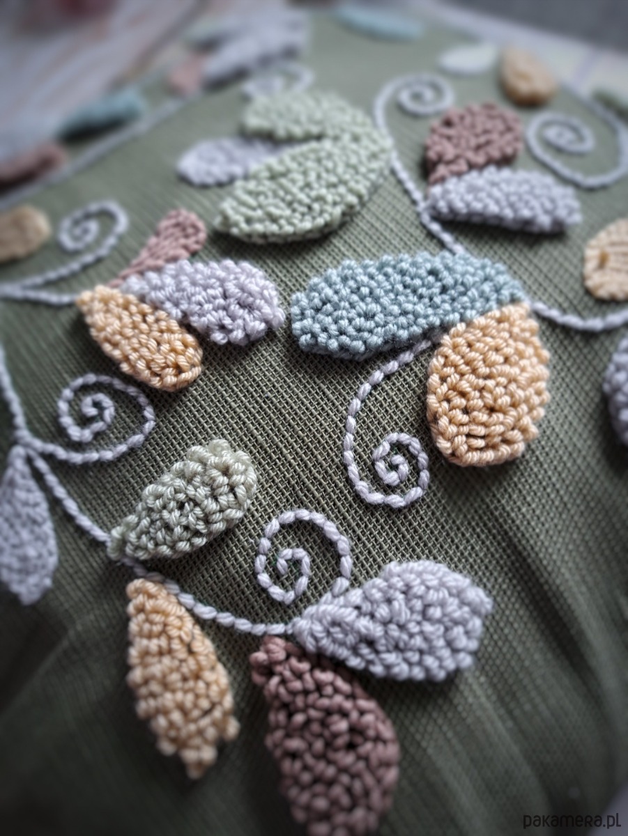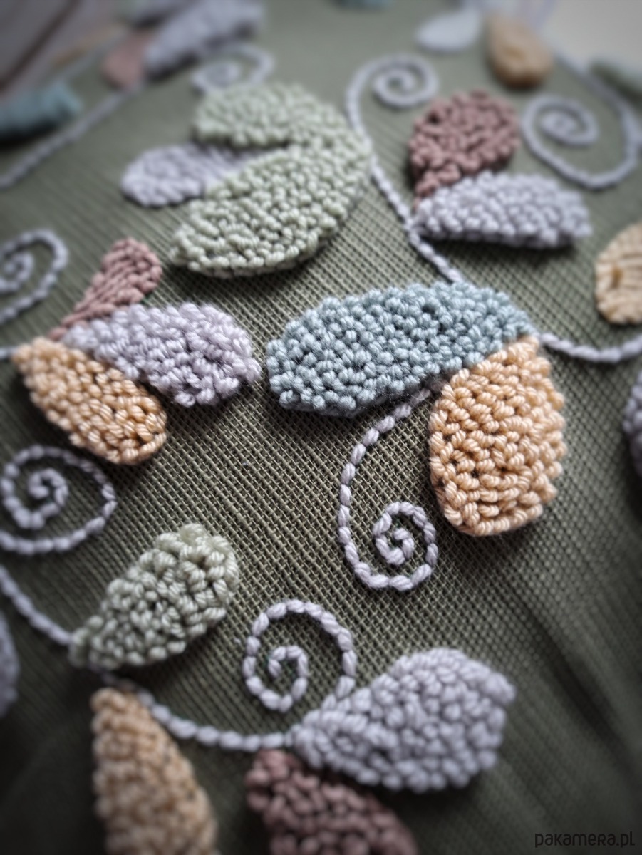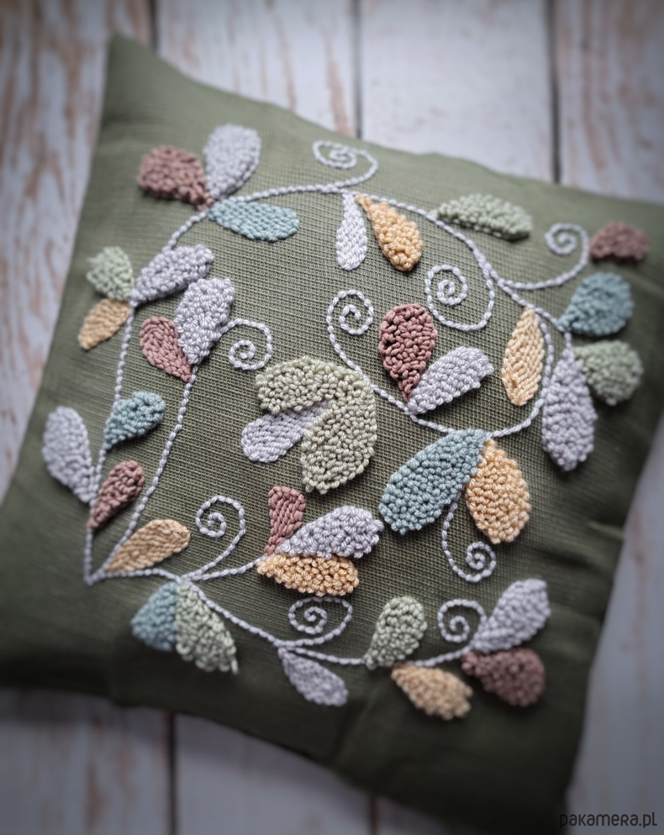 Poszewka wykonana za pomocą haftu punch needle.