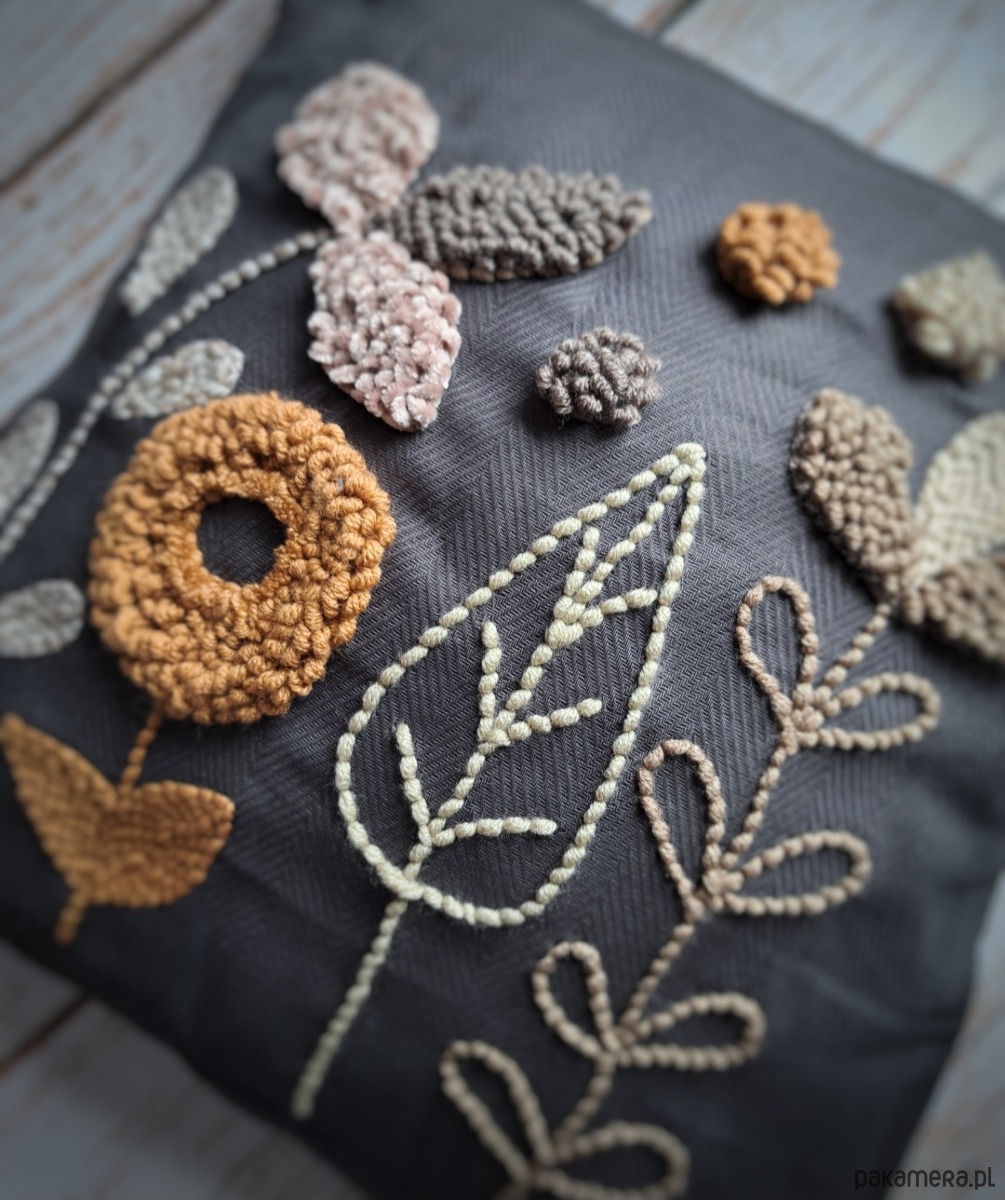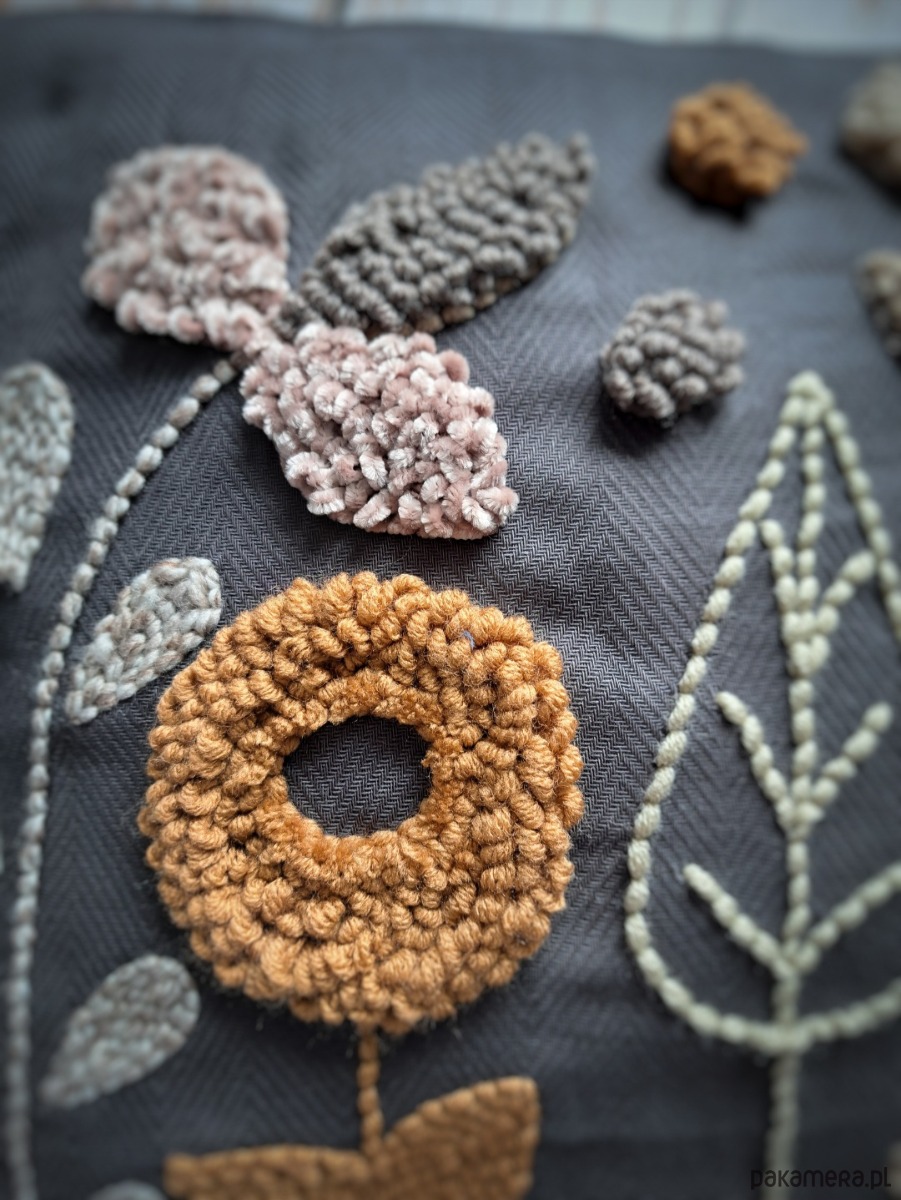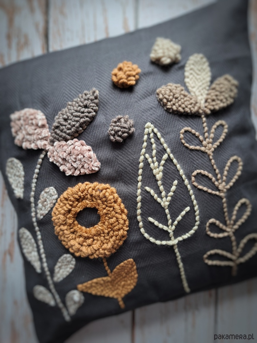 Poszewka wykonana za pomocą haftu punch needle.
