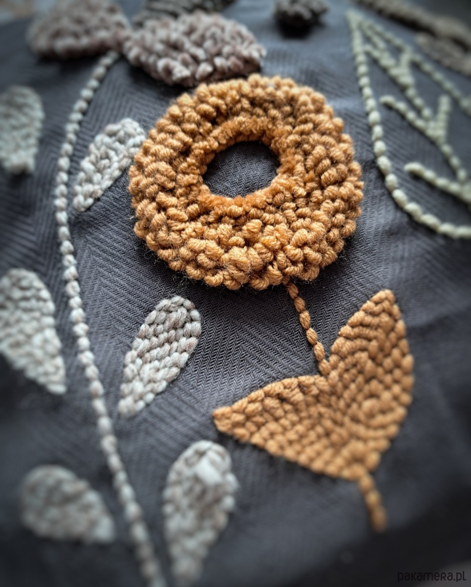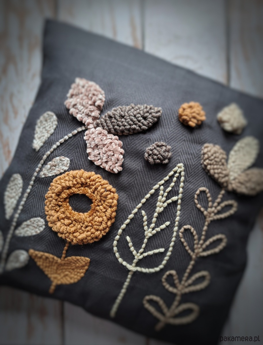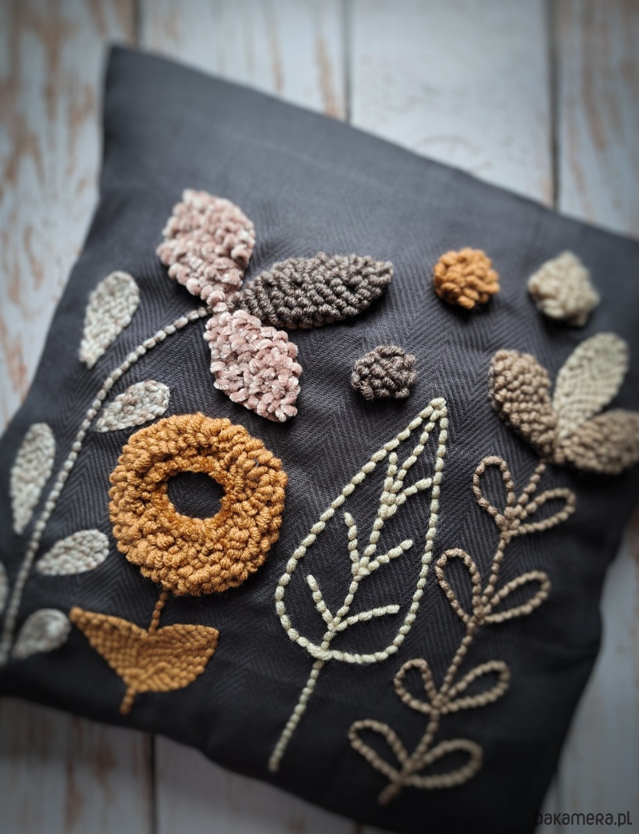 Poszewka wykonana za pomocą haftu punch needle.