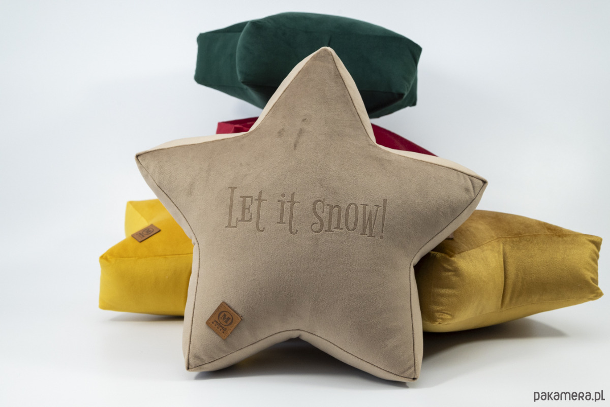 Poduszka dekoracyjna gwiazdka, świąteczna velvetowa - grawer Let it snow