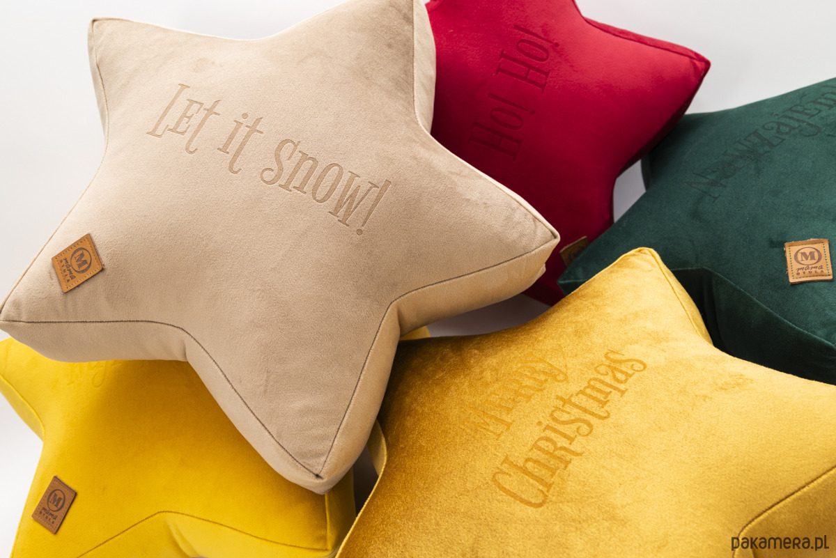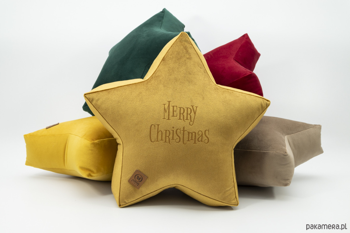 Poduszka dekoracyjna gwiazdka, świąteczna velvetowa - grawer MERRY CHRISTMAS