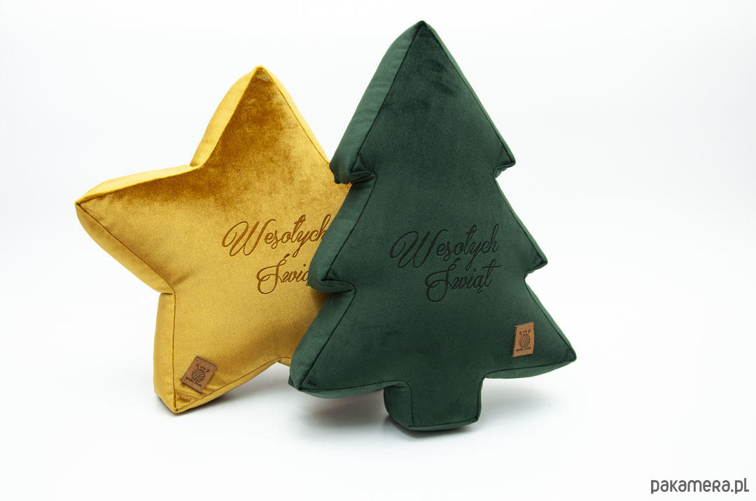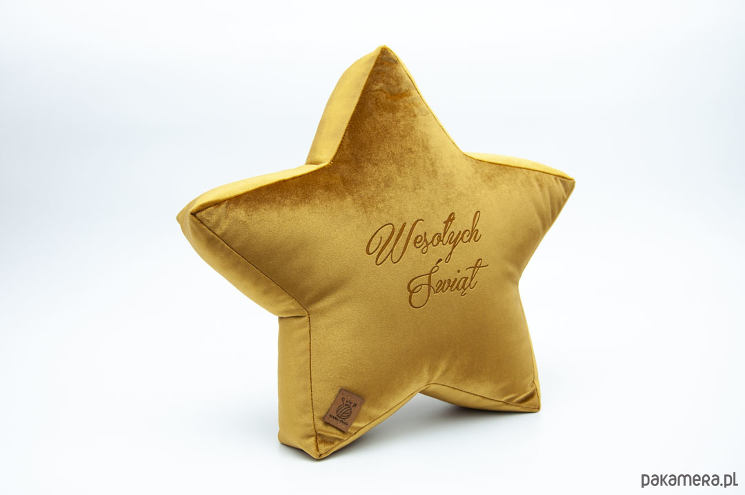 Poduszka dekoracyjna gwiazdka, świąteczna velvetowa - grawer Wesołych Świąt