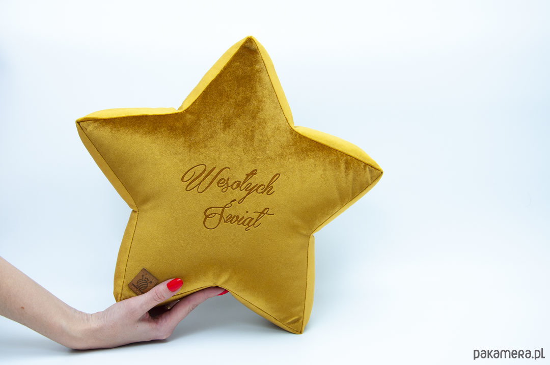 Poduszka dekoracyjna w kształcie gwiazdki wykonana z velvetu - wyjątkowy personalizowany prezent - złóż życzenia w oryginalny sposób!