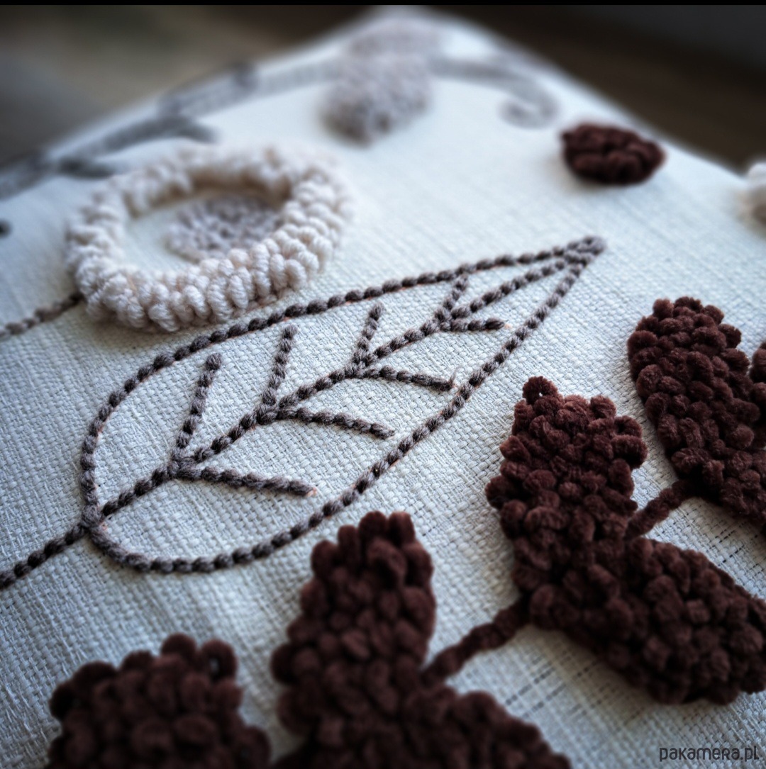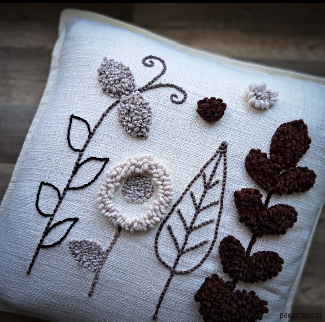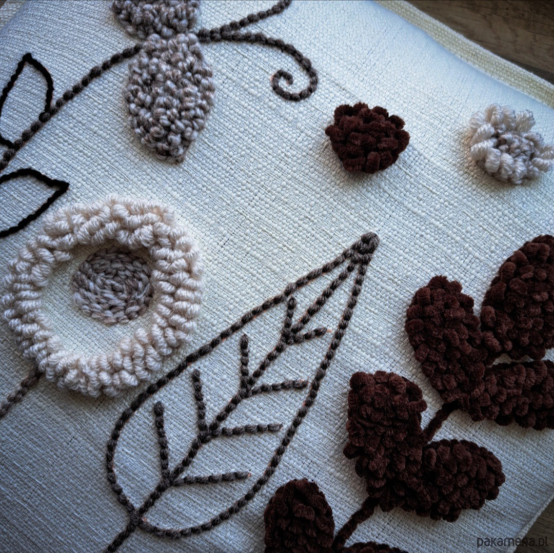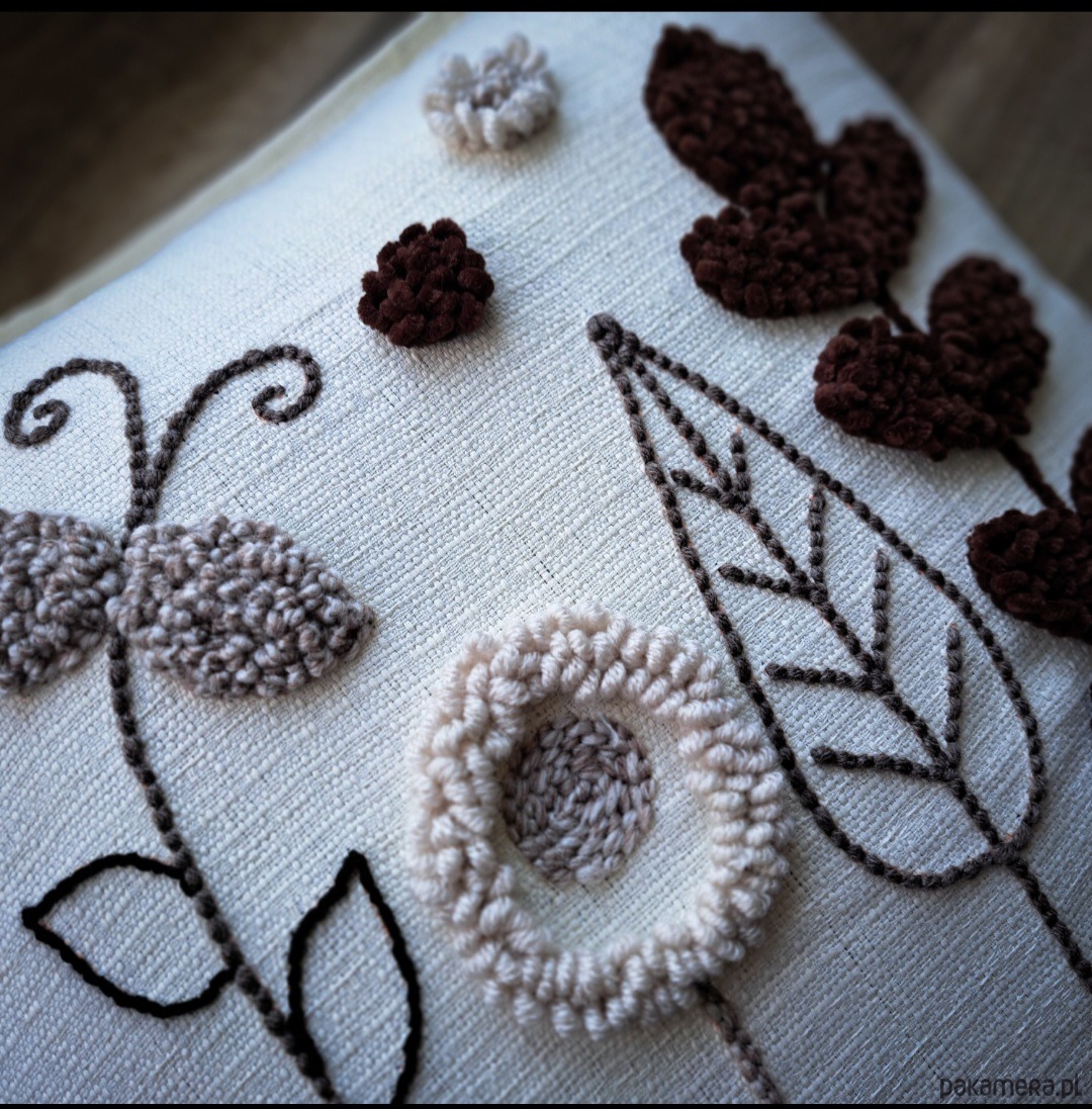 Wykonana za pomocą haftu punch needle.
