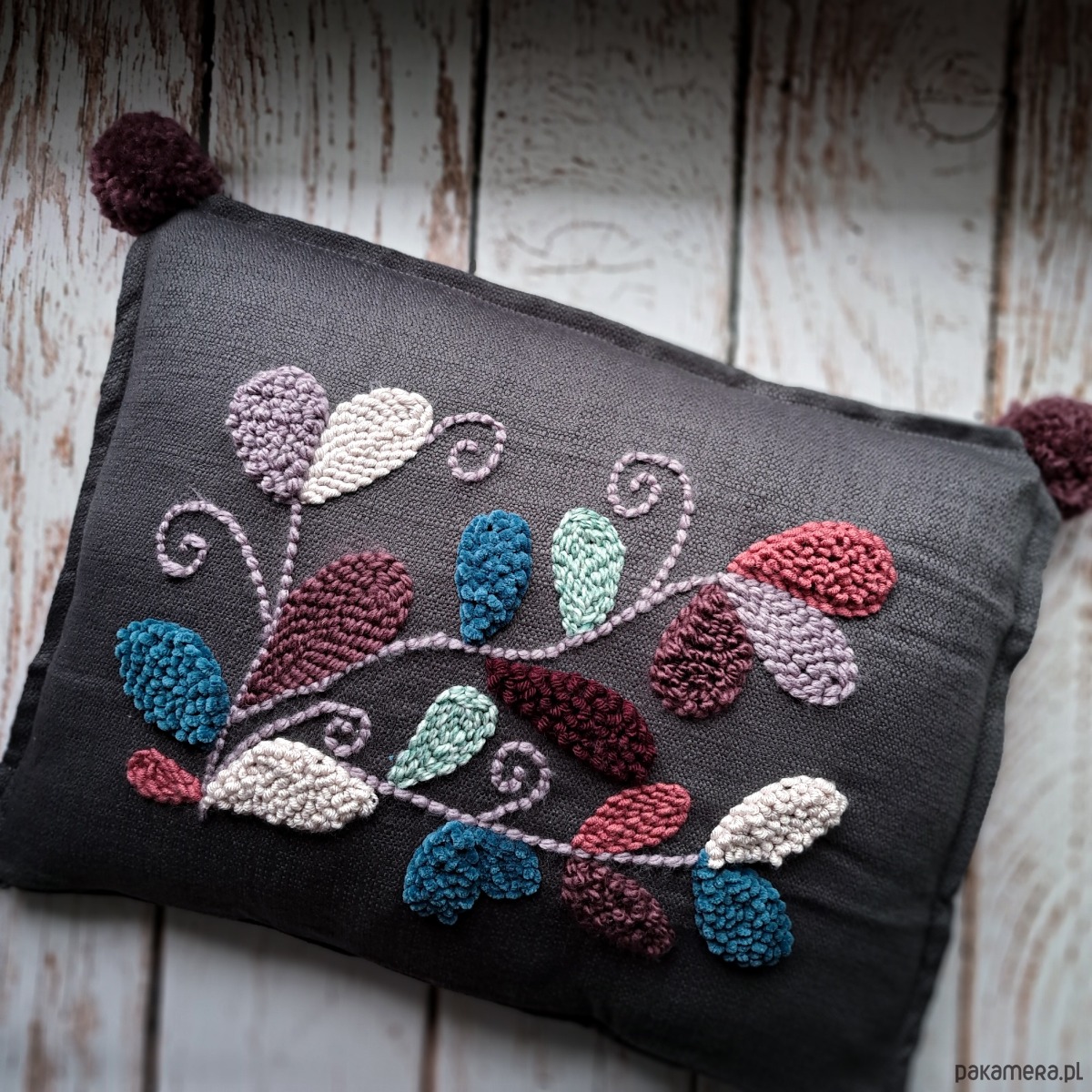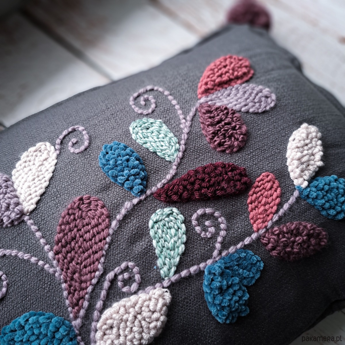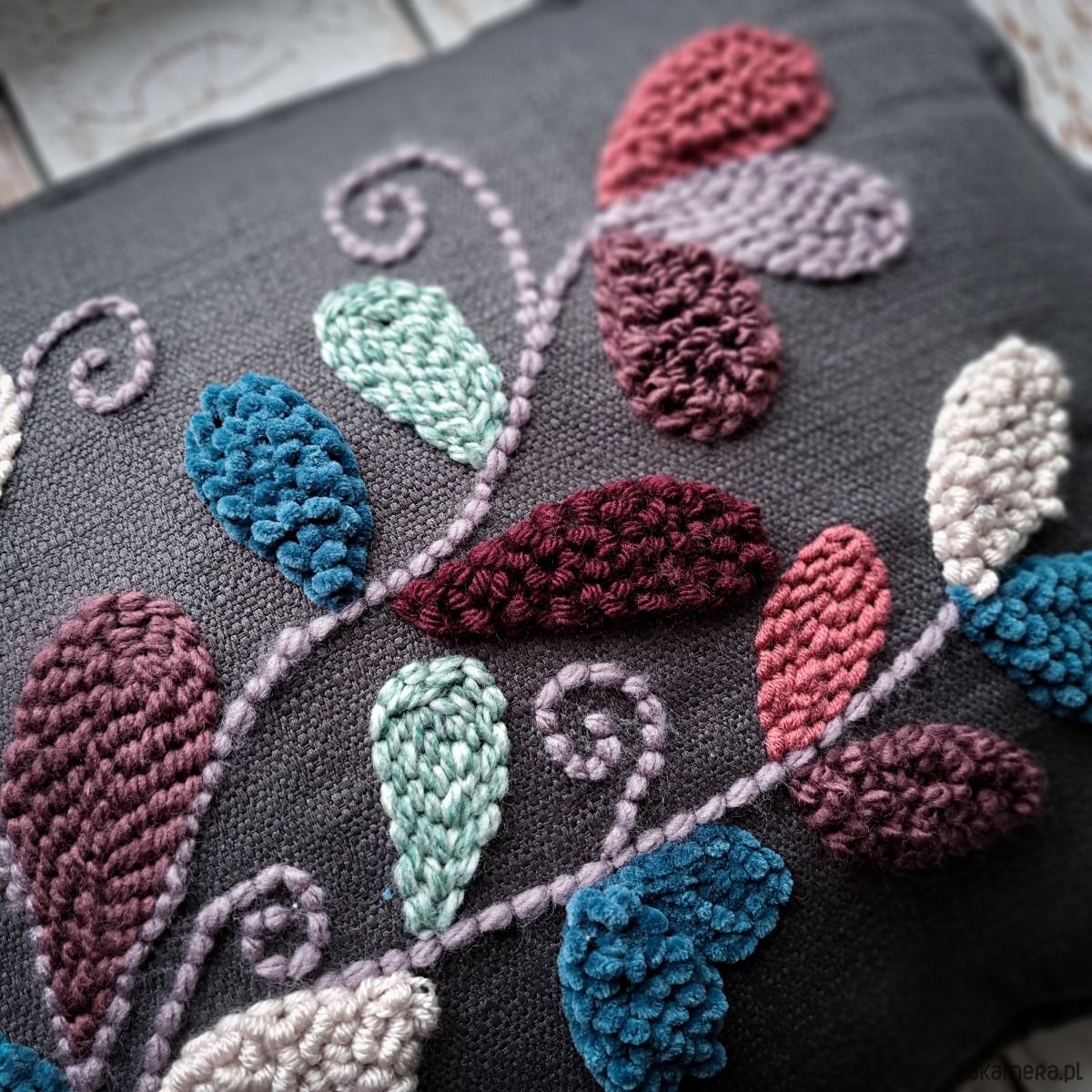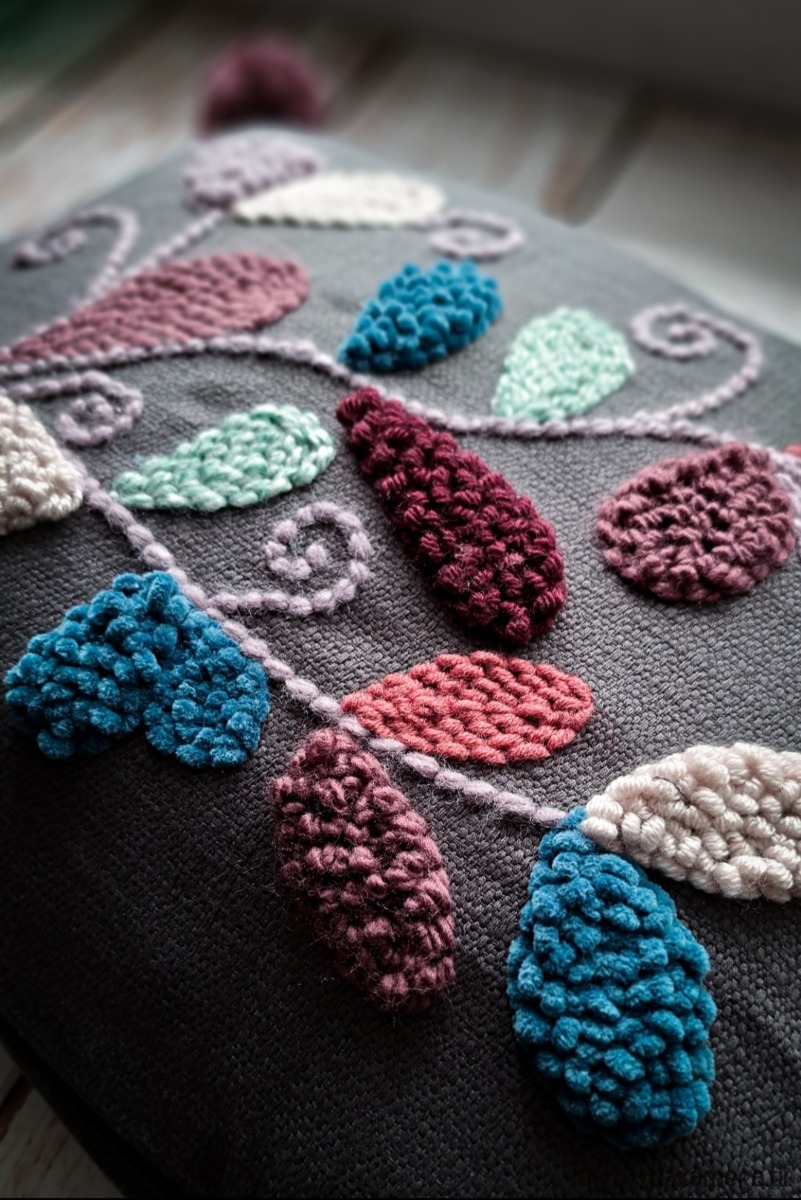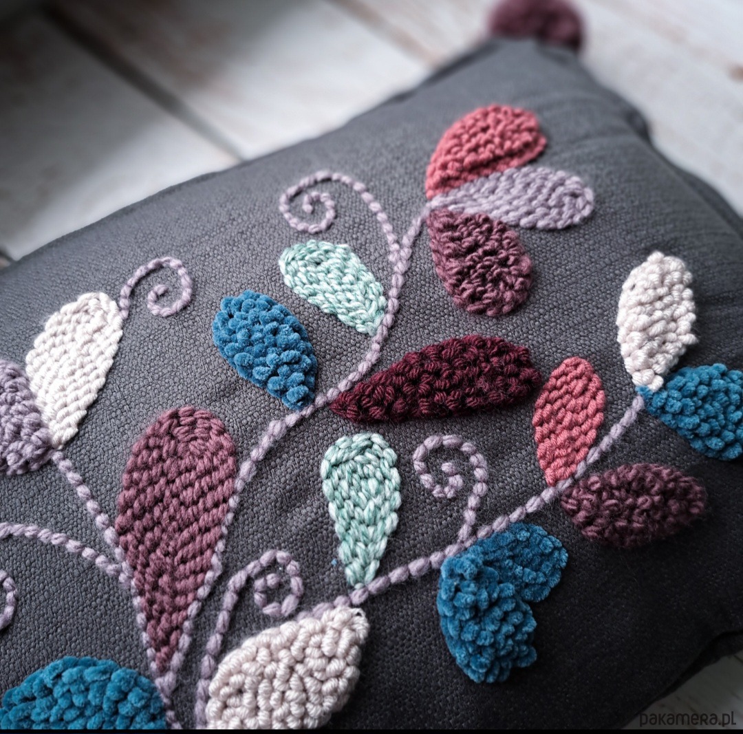 Wykonana za pomocą haftu punch needle.