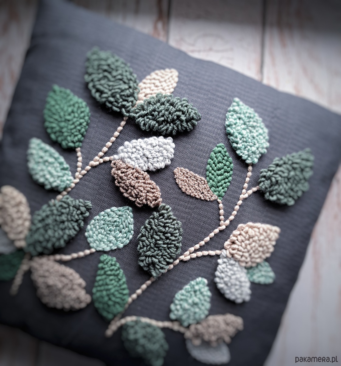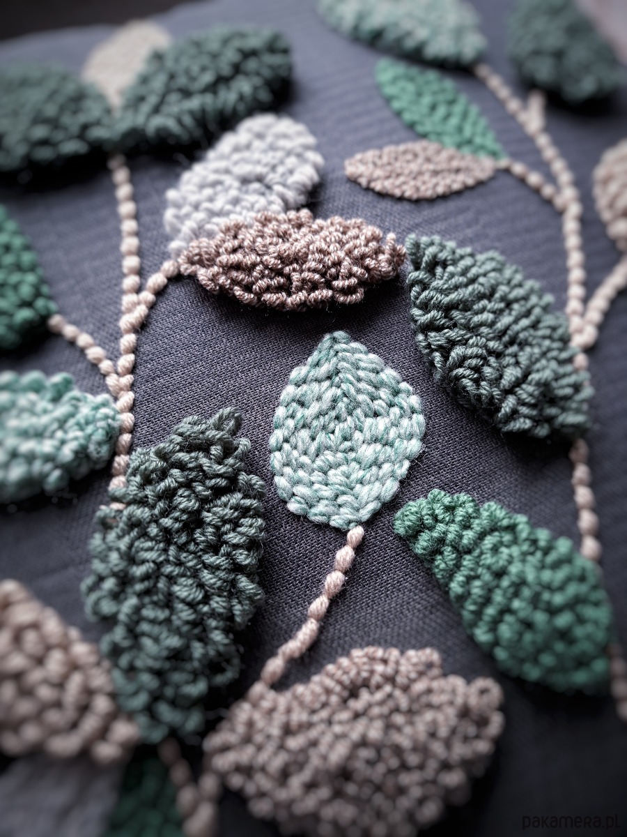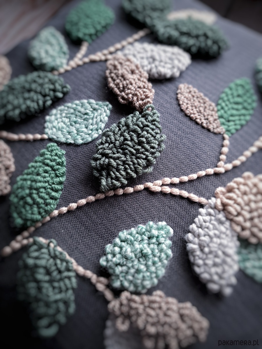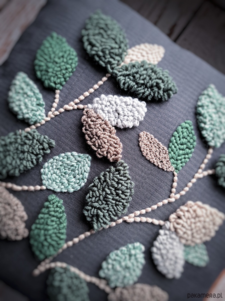 Poduszka dekoracyjna liscie Boho punch needle
