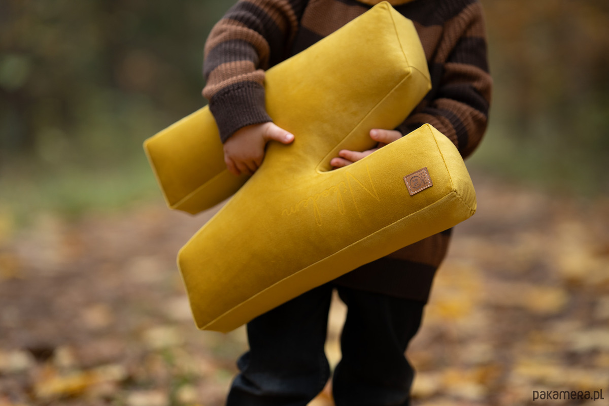 Personalizowana poduszka dekoracyjna w kształcie litery z grawerem imienia – idealny prezent dla dziecka