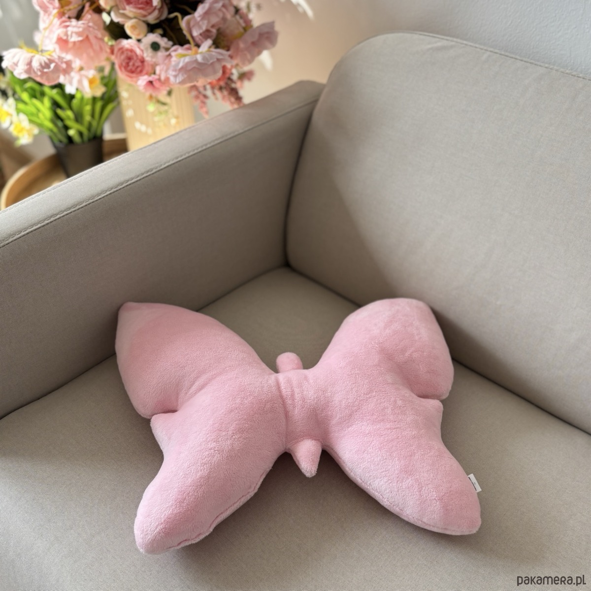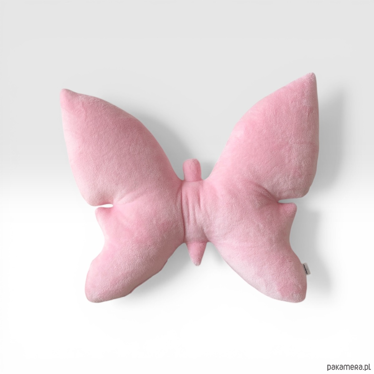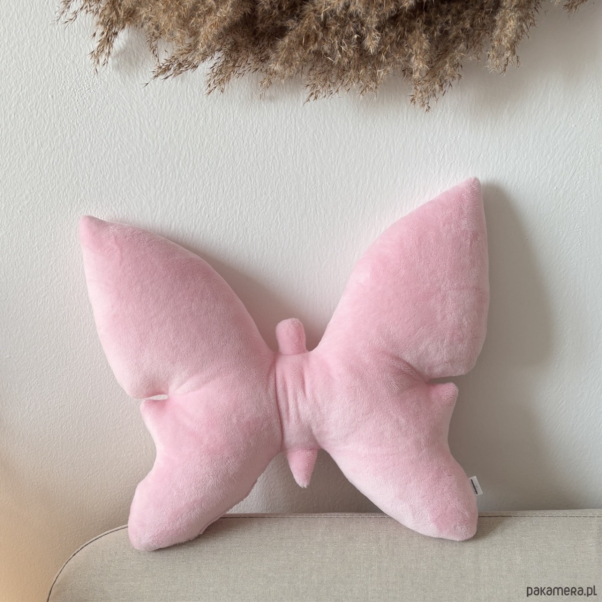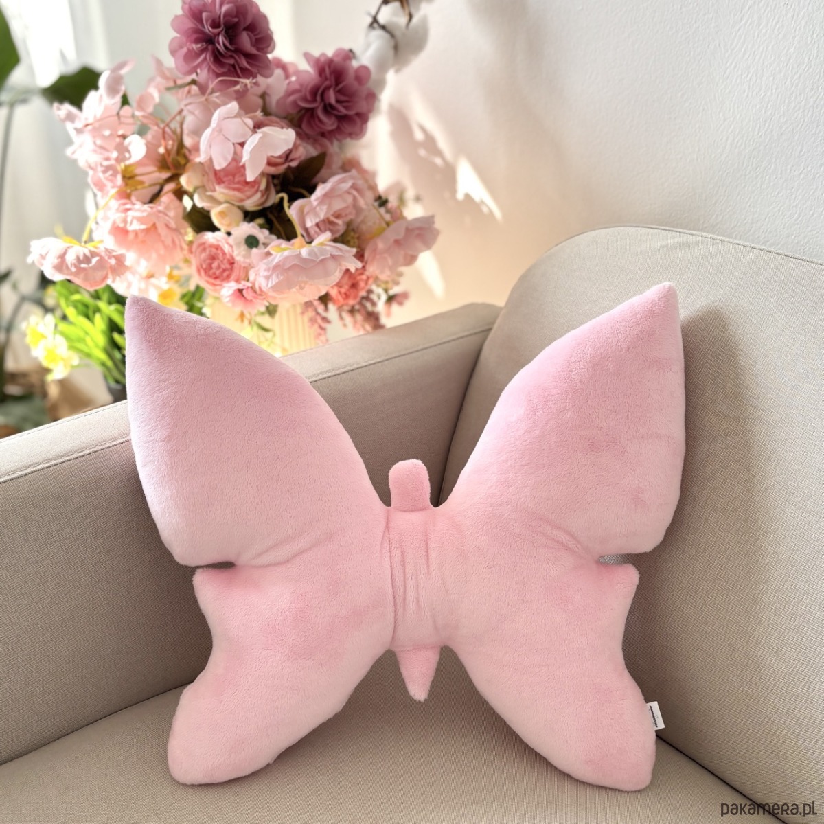 Poduszka wykonana z niezwykle miękkiej tkaniny minky plusz. Zachwyca minimalistyczną formą inspirowaną kształtem motyla oraz pięknym delikatnym kolorem jasnego pastelowego różu, który ożywia wnętrze i nadaje mu wyjątkowego charakteru. To propozycja dla osób, które lubią delikatne pastelowe akcenty w nowoczesnym wydaniu.