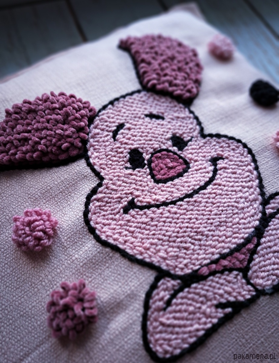 w wersji punch needle to poduszka, która wnosi do domu uśmiech i spokój. Urocza, mięciutka i różowa – doda przytulności każdemu wnętrzu i przypomni, że czasem warto cieszyć się z małych rzeczy. 🐷