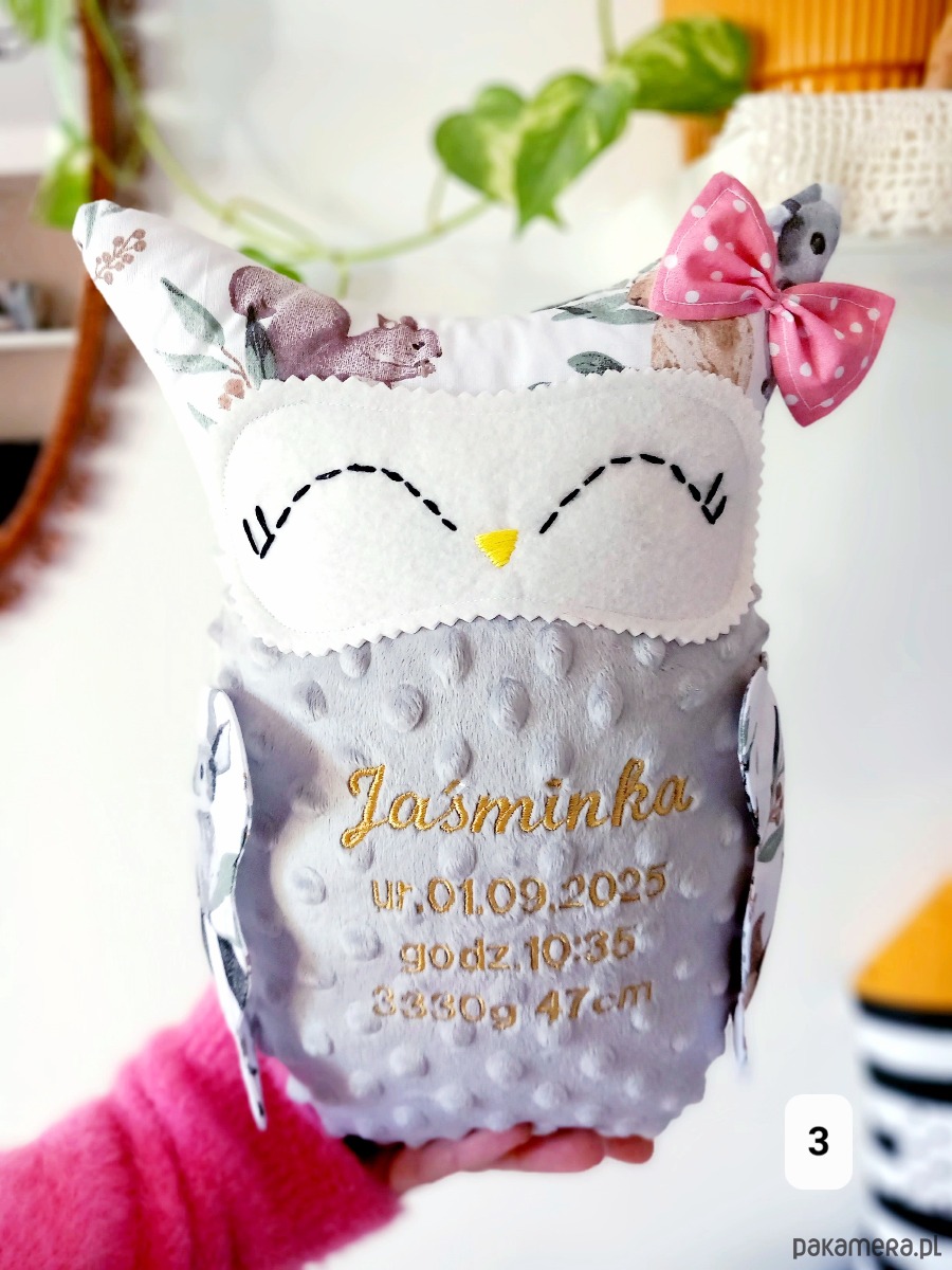 Moja poduszka przytulanka SÓWKA personalizowana, czyli z wyhaftowanym imieniem oraz ew.metryczka dziecka!