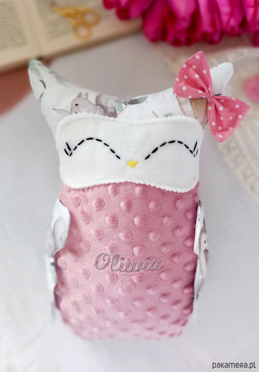 Moja poduszka przytulanka SÓWKA personalizowana, czyli z wyhaftowanym imieniem oraz ew.metryczka dziecka!