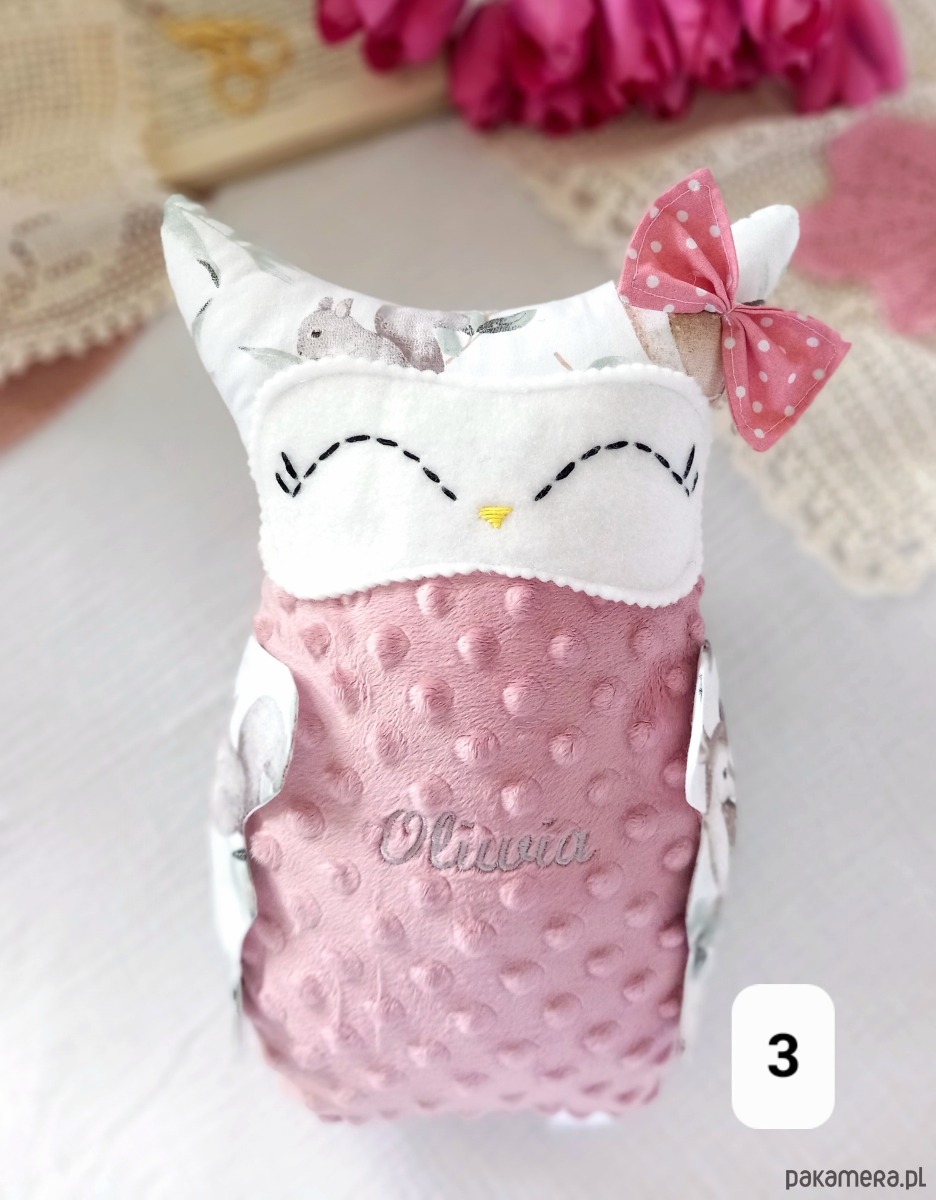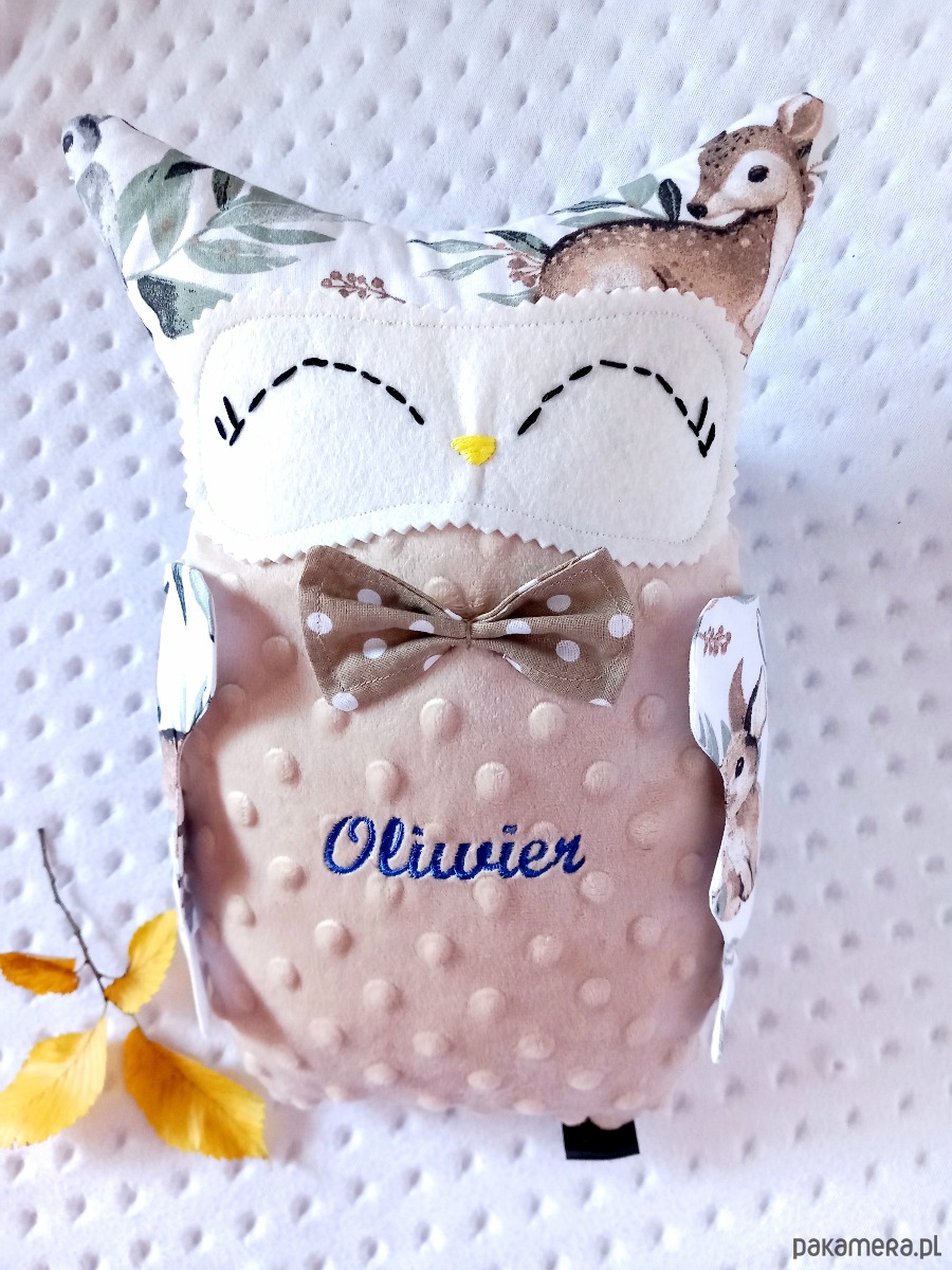 Moja poduszka przytulanka SÓWKA personalizowana, czyli z wyhaftowanym imieniem oraz ew.metryczka dziecka!