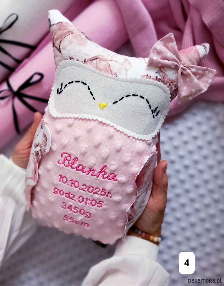 Moja poduszka przytulanka SÓWKA personalizowana, czyli z wyhaftowanym imieniem oraz ew.metryczka dziecka!
