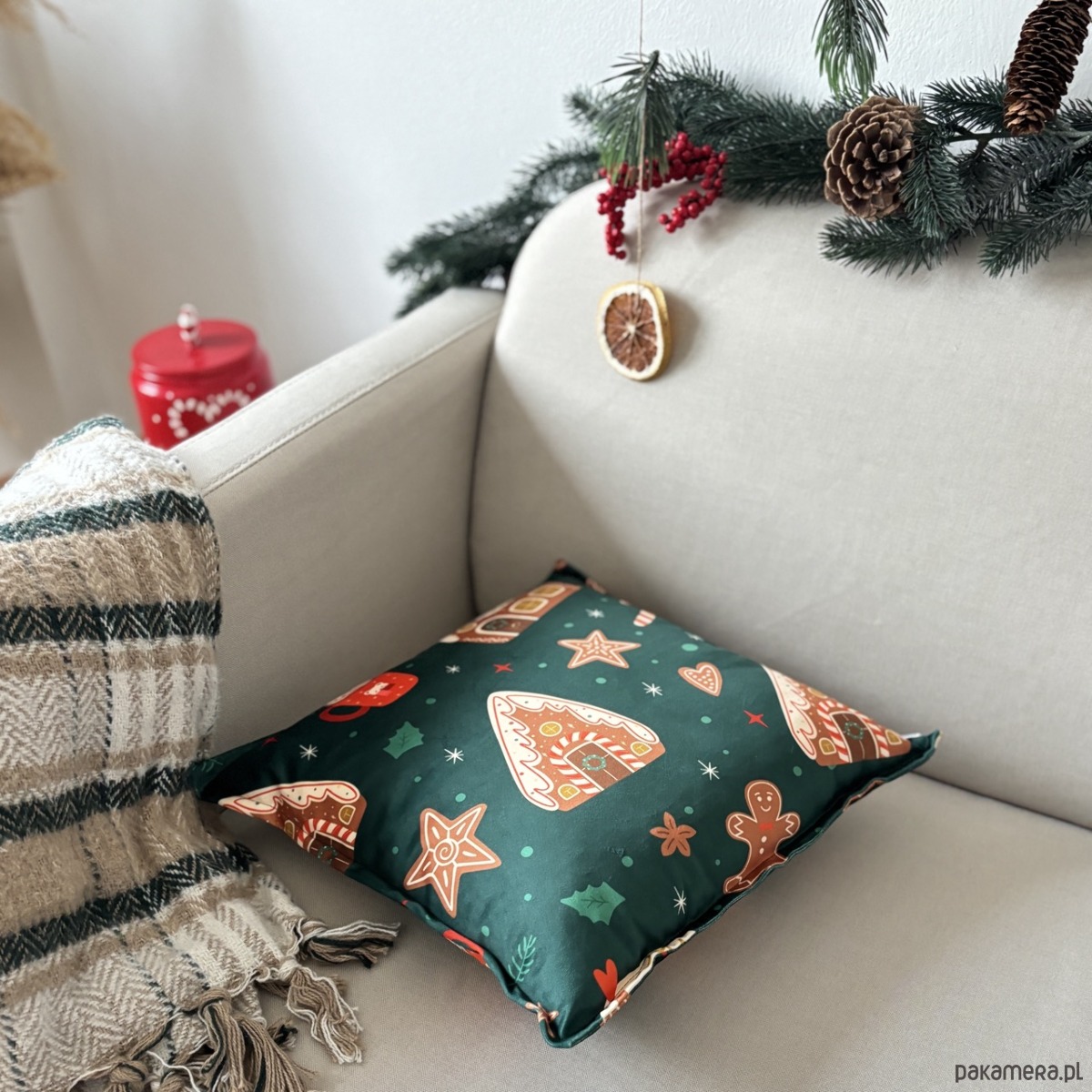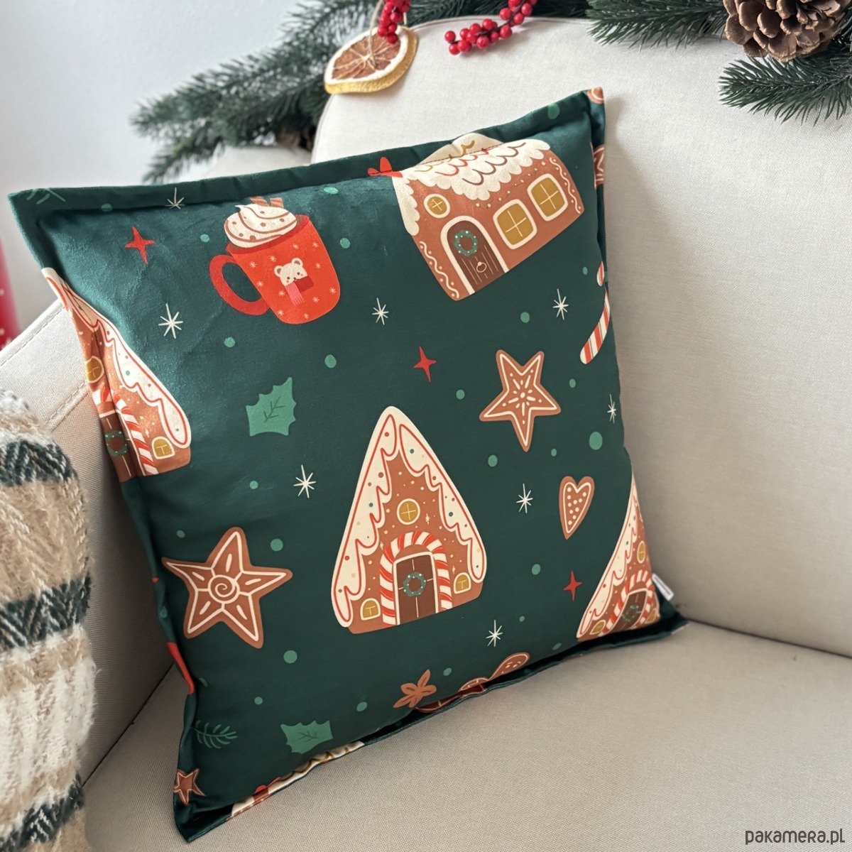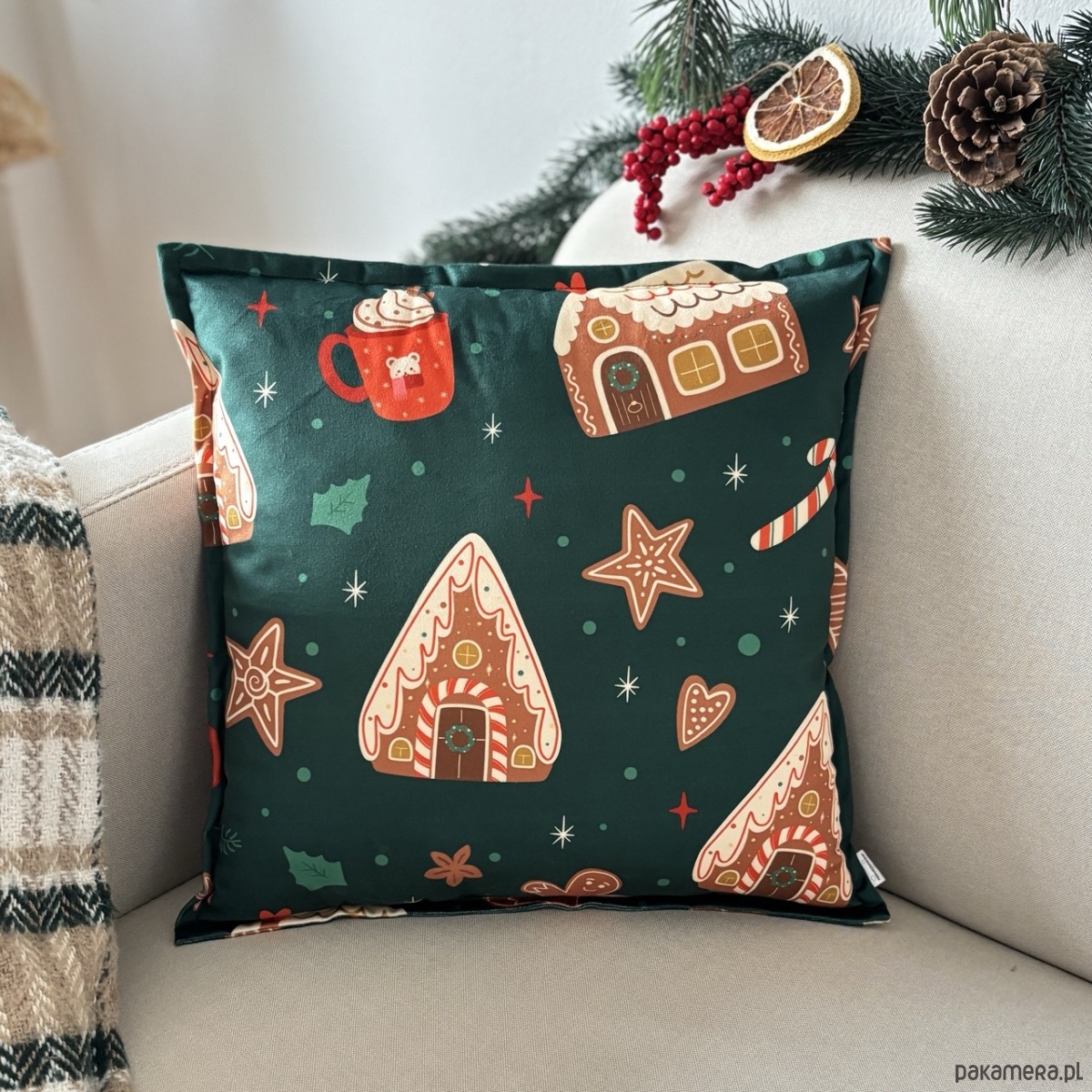 Poduszka dekoracyjna wzór świąteczne Domki piernikowe w klimacie Bożego Narodzenia