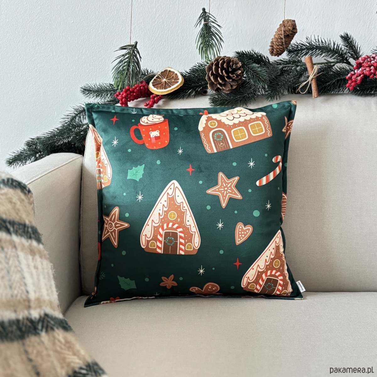 Poduszka Dekoracyjna Świąteczna Domki Piernikowe Boże Narodzenie