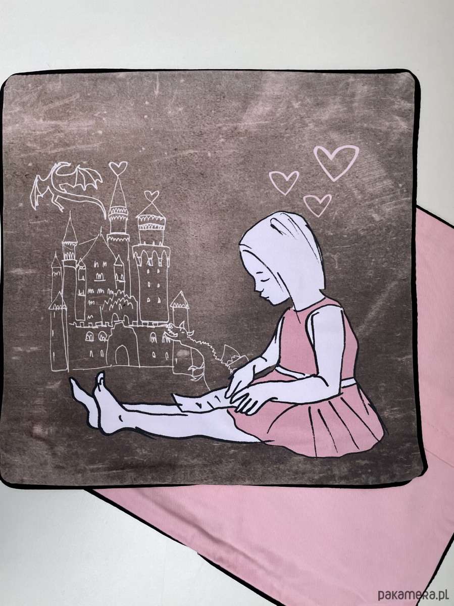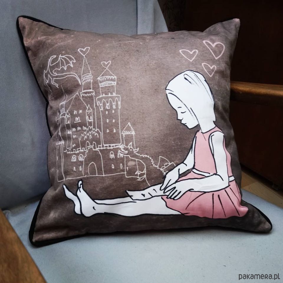 PODUSZKA dekoracyjna w autorski wzór dziewczynka czytająca baśnie