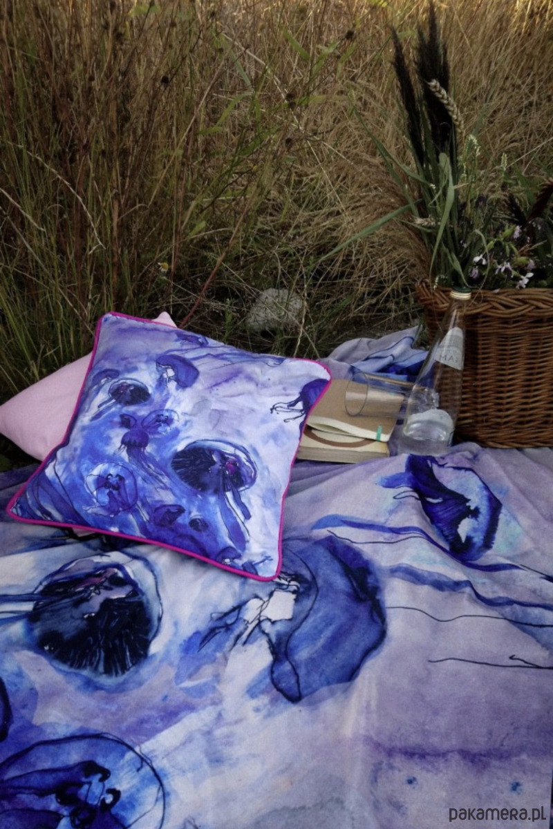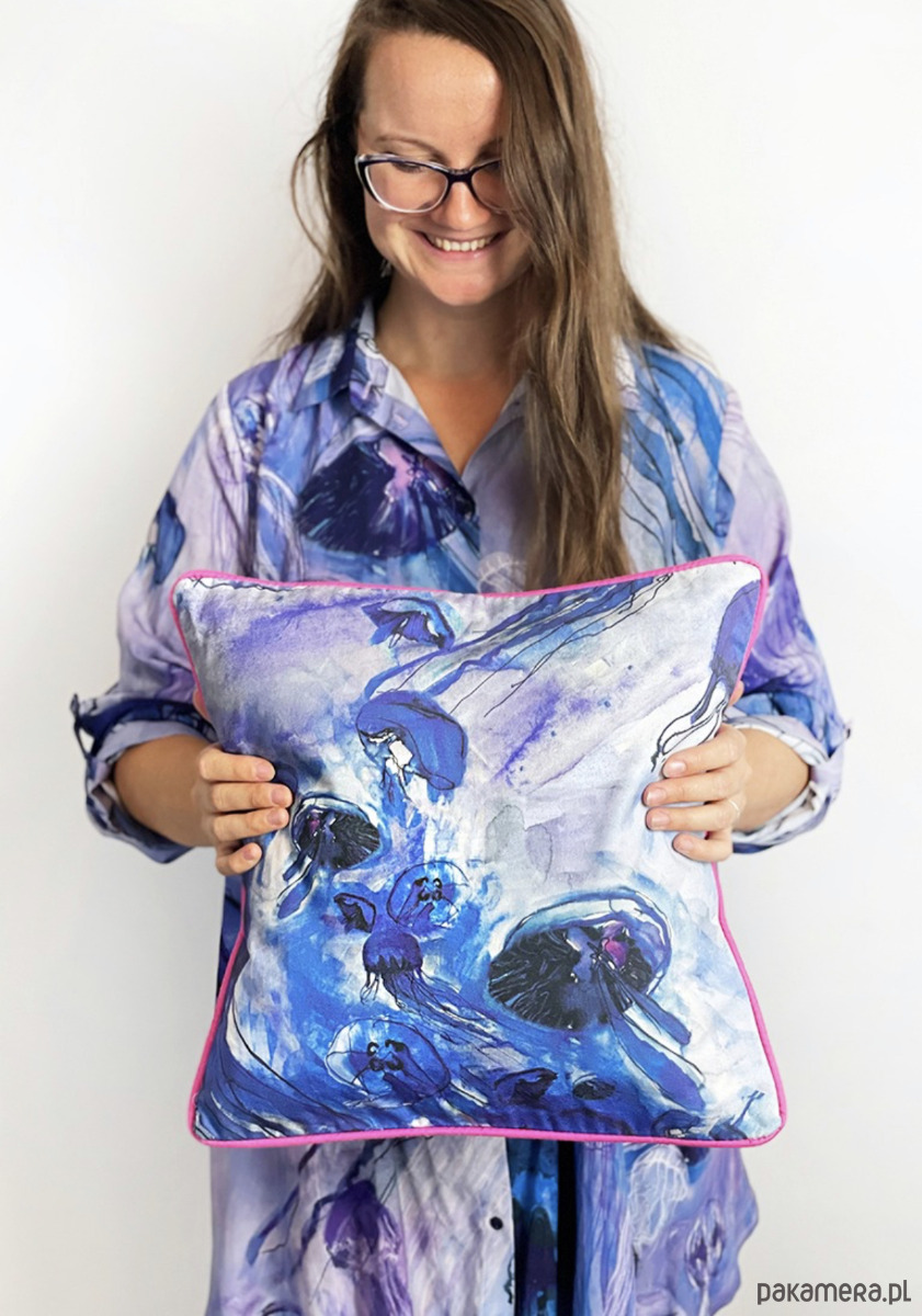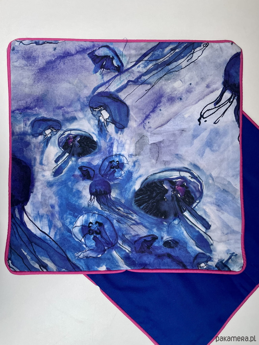 PODUSZKA dekoracyjna w autorski wzór morski akwarelowe MEDUZY