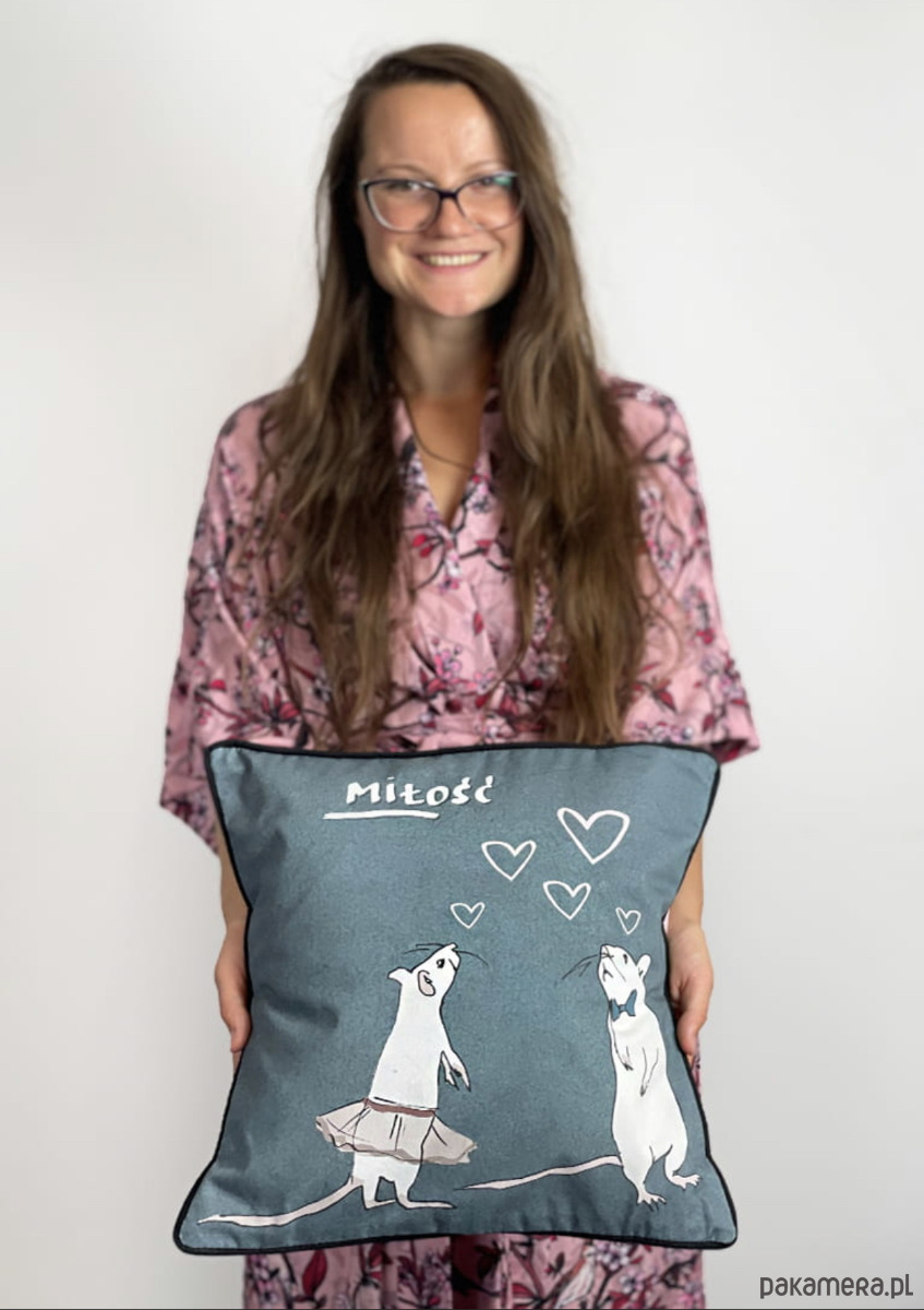 PODUSZKA dekoracyjna w autorski wzór zakochane MYSZKI