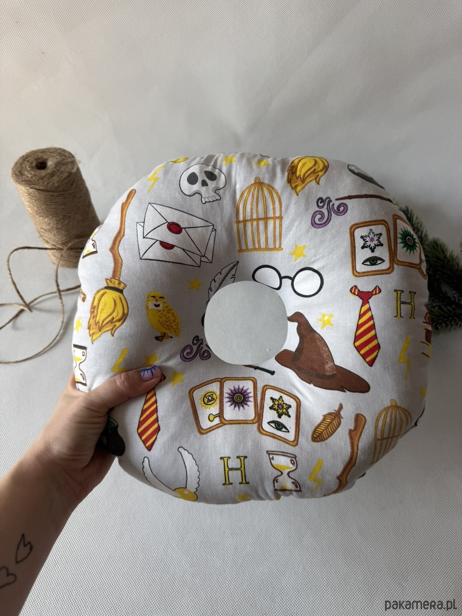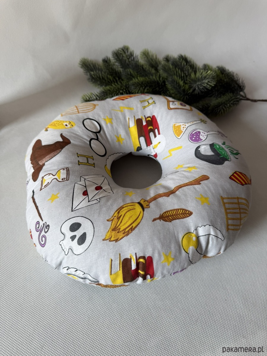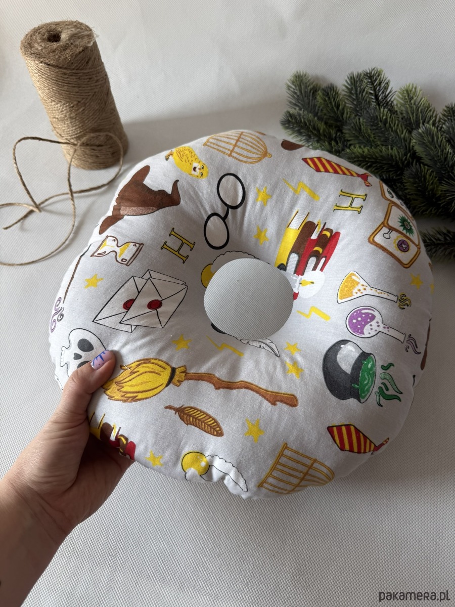 Poduszka ma kompaktowy, okrągły kształt o wymiarach ok. 32 × 32 cm – idealna zarówno do łóżka, jak i w podróży. Świetnie sprawdzi się nie tylko po przekłuciach uszu, ale także przy stanach zapalnych, rekonwalescencji po operacjach czy dla osób korzystających z aparatów słuchowych.