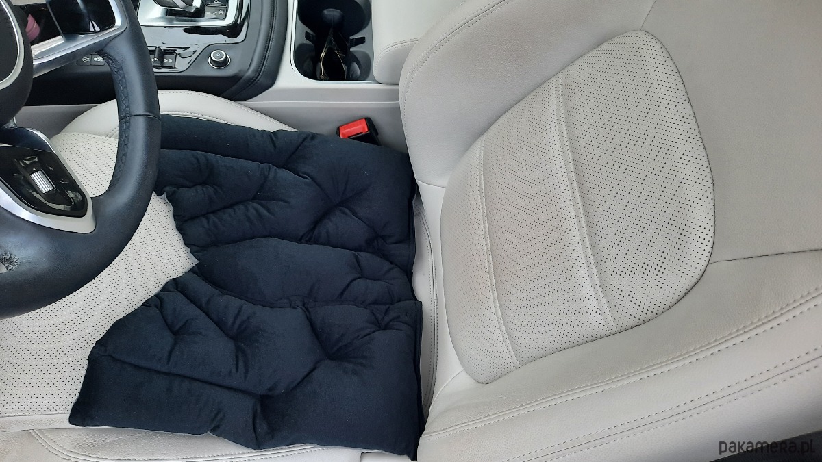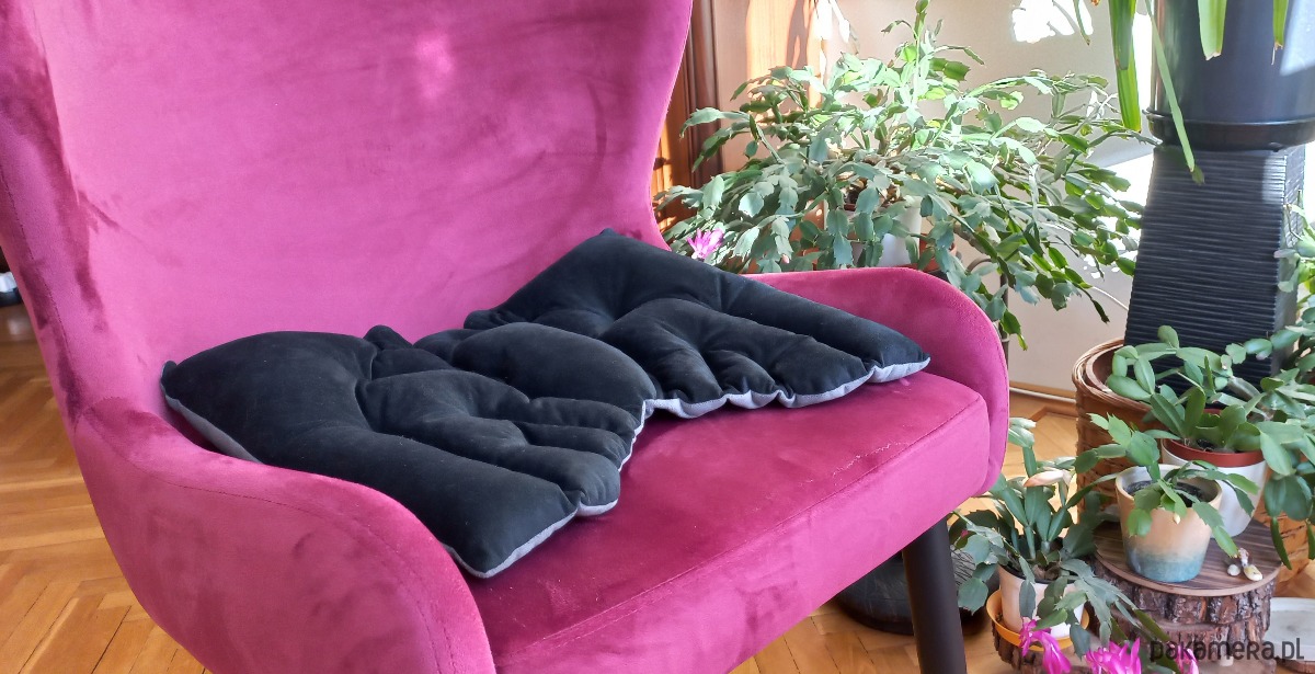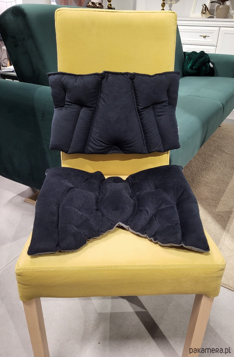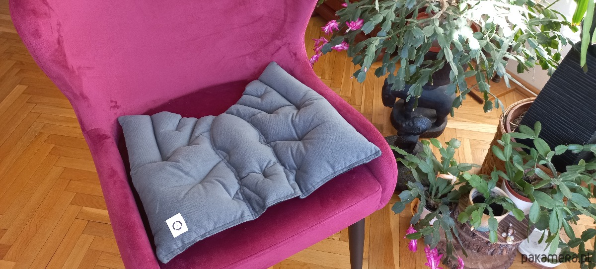 Polecamy układać ją na fotelach samochodowych klinem do przodu, a na zwykłych fotelach domowych/biurowych – tyłem. Poduszka jest dwustronna i ułożenie należy dobrać pod siebie i pod swoją wygodę.