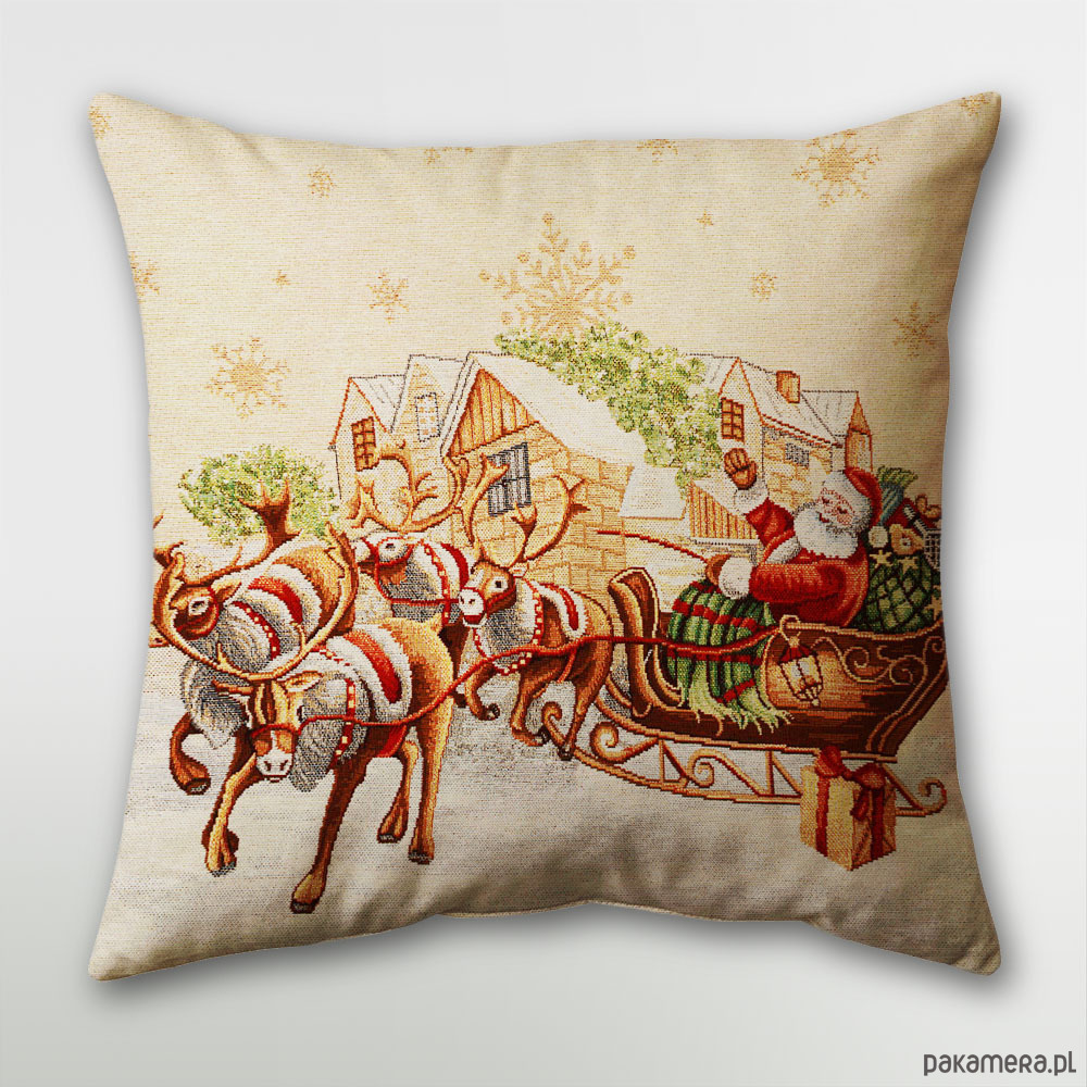 Śliczna poduszka na gwiazdkę. Z przodu gobelinowy wzór, z tyłu pikowany velvet. Wysokość - szerokość ok. 40 cm.