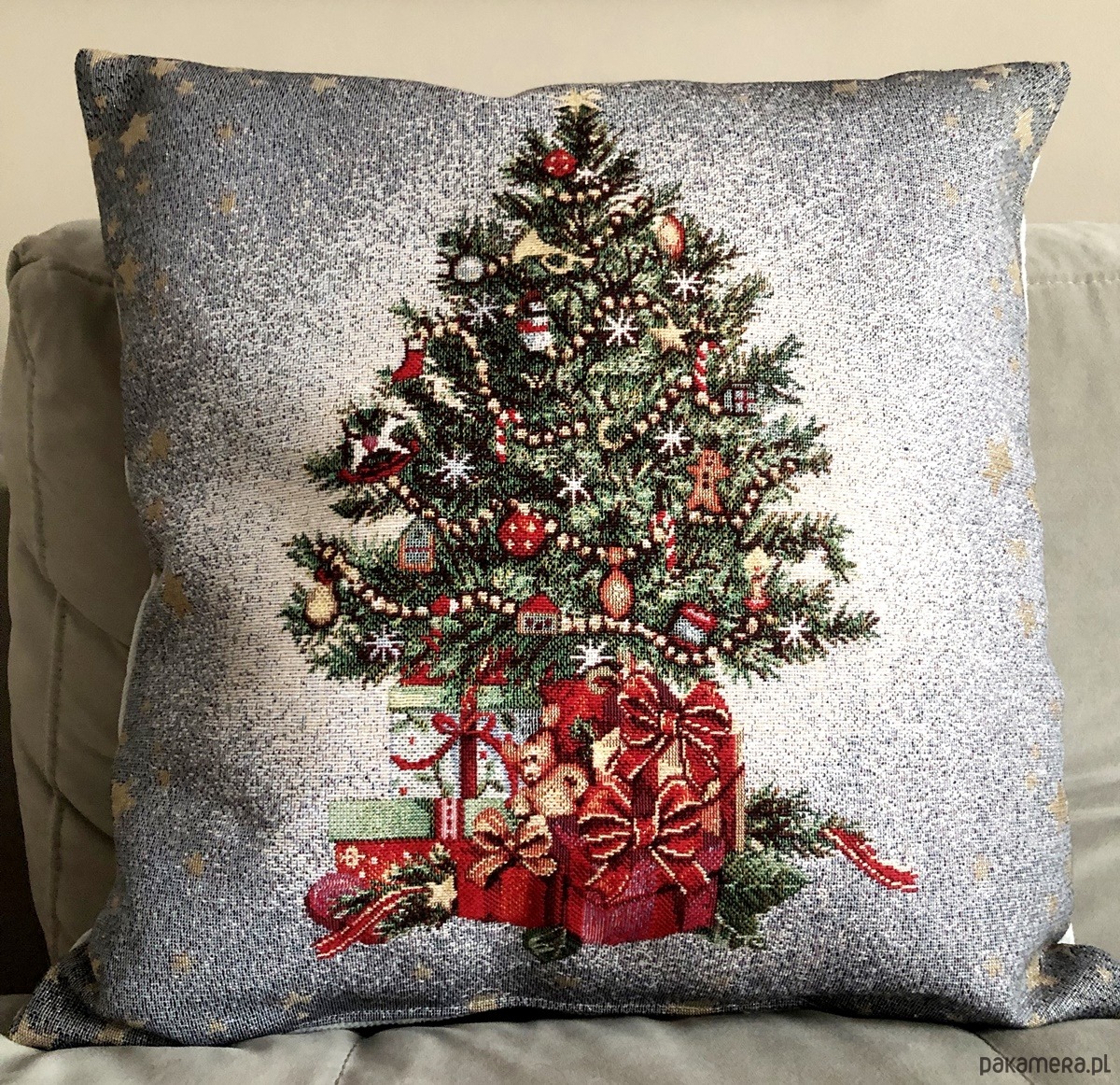 Poduszka gobelinowa na gwiazdkę z choinką