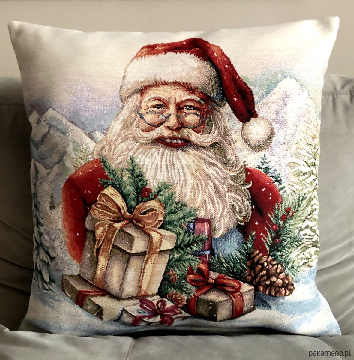Poduszka gobelinowa na gwiazdkę z Mikołajem