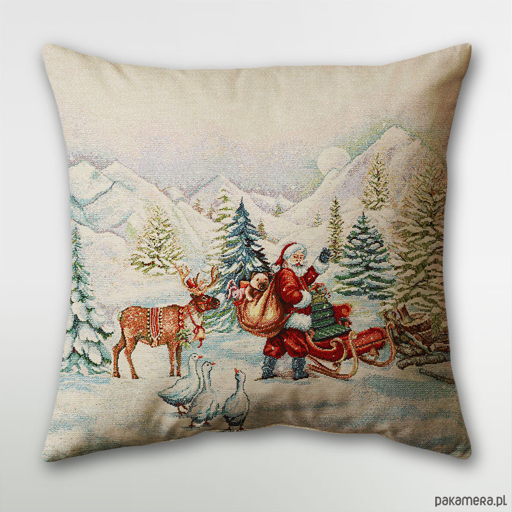 Poduszka gobelinowa na gwiazdkę z Mikołajem